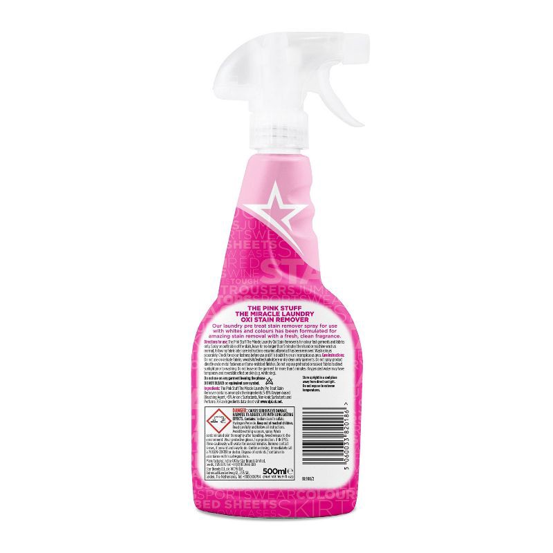 The Pink Stuff the Miracle Laundry Pre Treat Stain Remover Contains Amongst Other Ingredients: 5-15% Oxygen-Based Bleaching Agent, <5% Anionic Surfactants, Non-Ionic Surfactants and Perfume.
