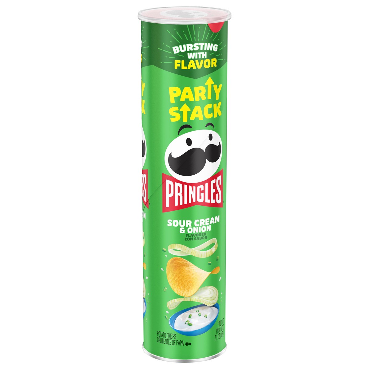 What comes next after the “pop” of a Pringles Sour Cream and Onion Party Stack can? The crisp, crunchy, hit-the-spot taste of potato seasoned with zesty sour cream and onion. Ingeniously shaped Pringl…