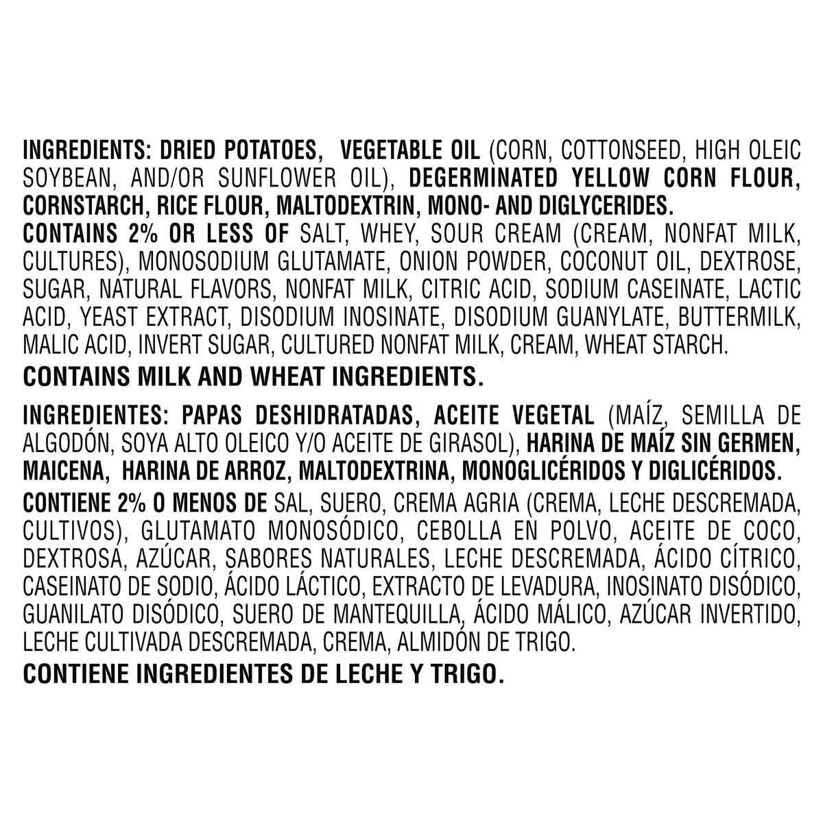 Ingredients: Dried Potatoes, Vegetable Oil (Corn, Cottonseed, High Oleic Soybean, And/Or Sunflower Oil), Degerminated Yellow Corn Flour, Cornstarch, Rice Flour, Maltodextrin, Mono- And Diglycerides. C…