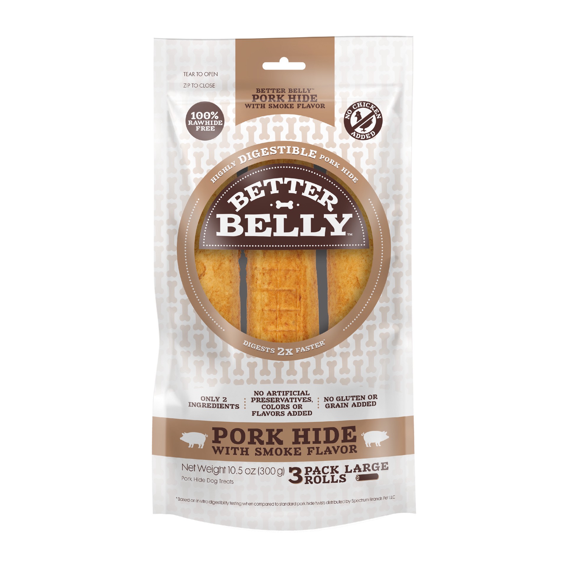 Better Belly All Life Stages Highly Digestible Large Pork Hide Rolls Dog Chew - Smoked Pork 10.5 Oz