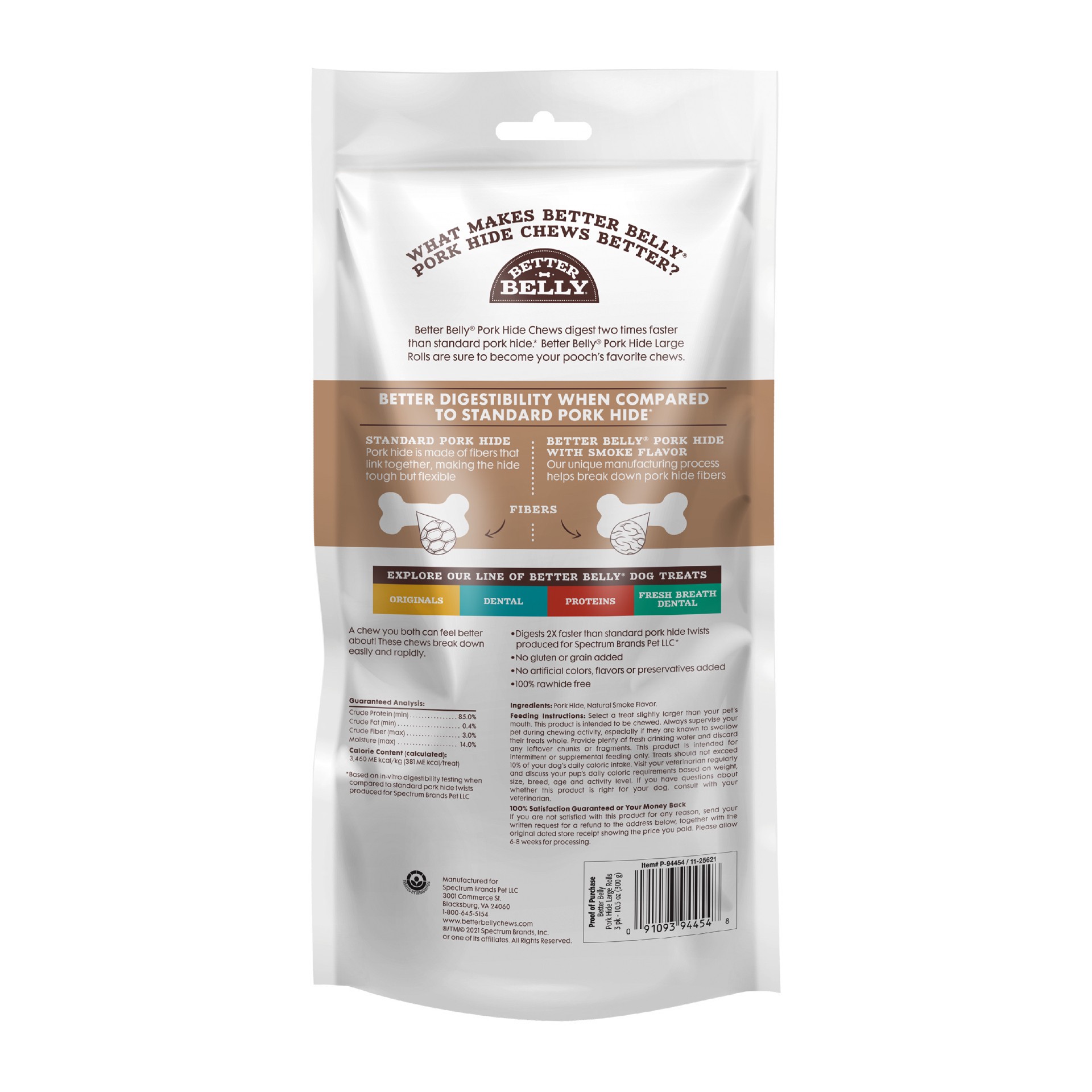Better Belly™ brand offers a variety of highly digestible chews for your dog. Our unique manufacturing process helps break down pork hide fibers so your pup can digest them faster. With no grain, glut…