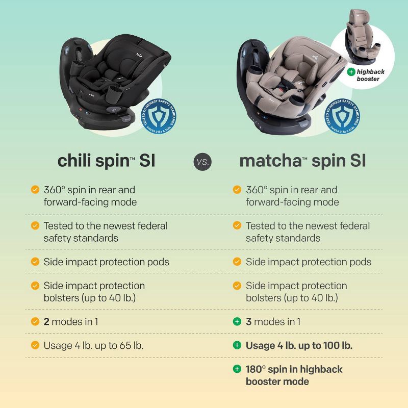 - Matcha™ Spin SI meets the newest safety standards for both frontal and side impact protection.