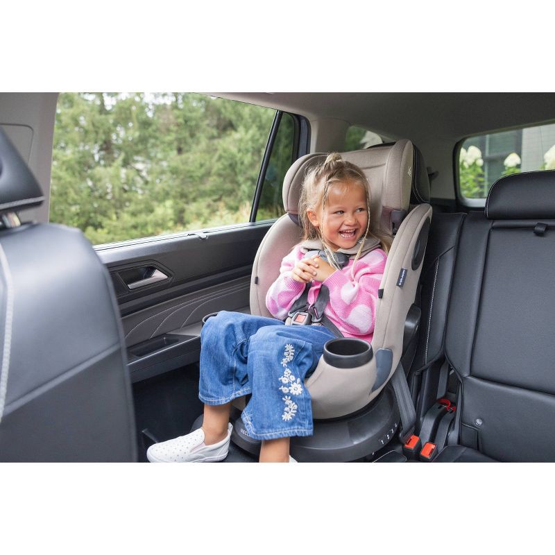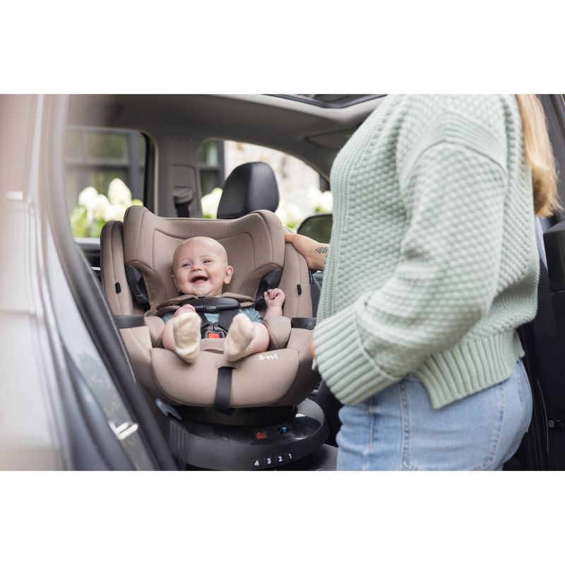 - The 360º spin in harness mode turns the car seat toward you so you can lift your child straight in and out of the car to fasten them while they're facing you.