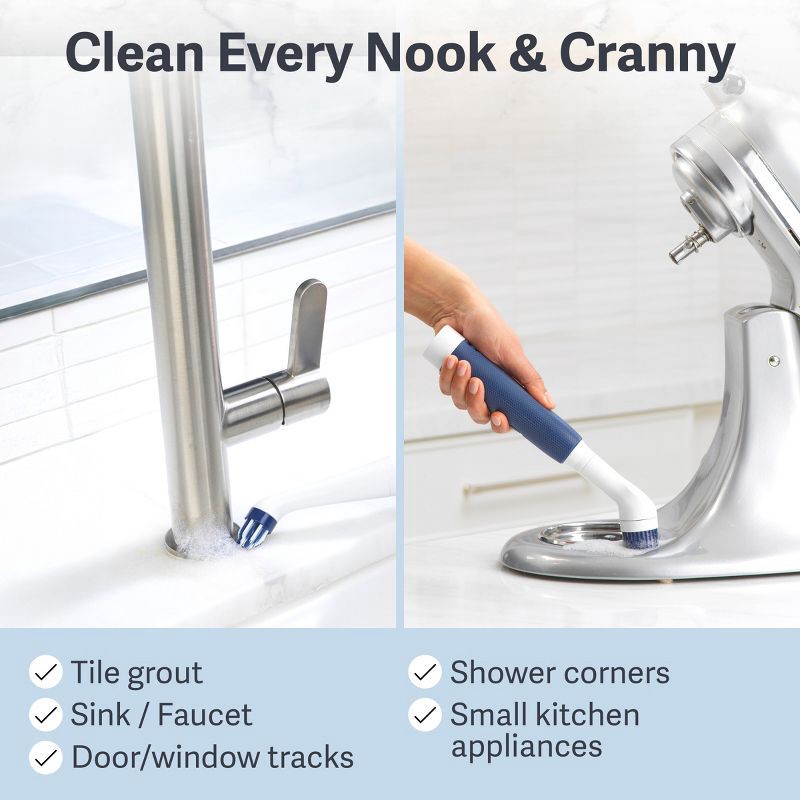 - INTERCHANGEABLE BRUSH HEADS: Comes with three unique brush attachments to tackle different surfaces and cleaning challenges.