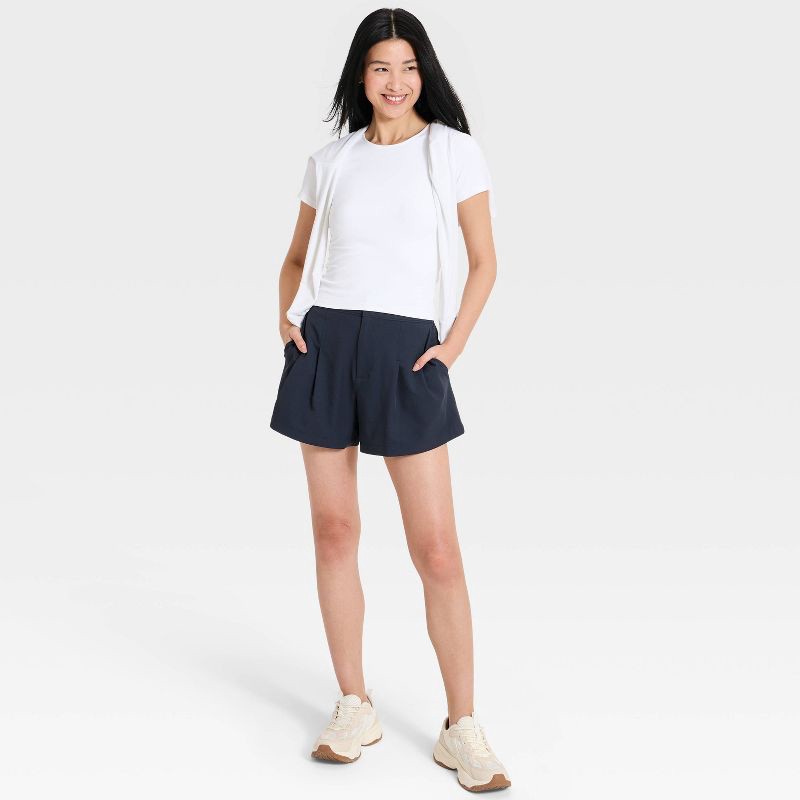 Women's Woven High-Rise Pleated Golf Shorts - All In Motion™ Navy Blue XXL