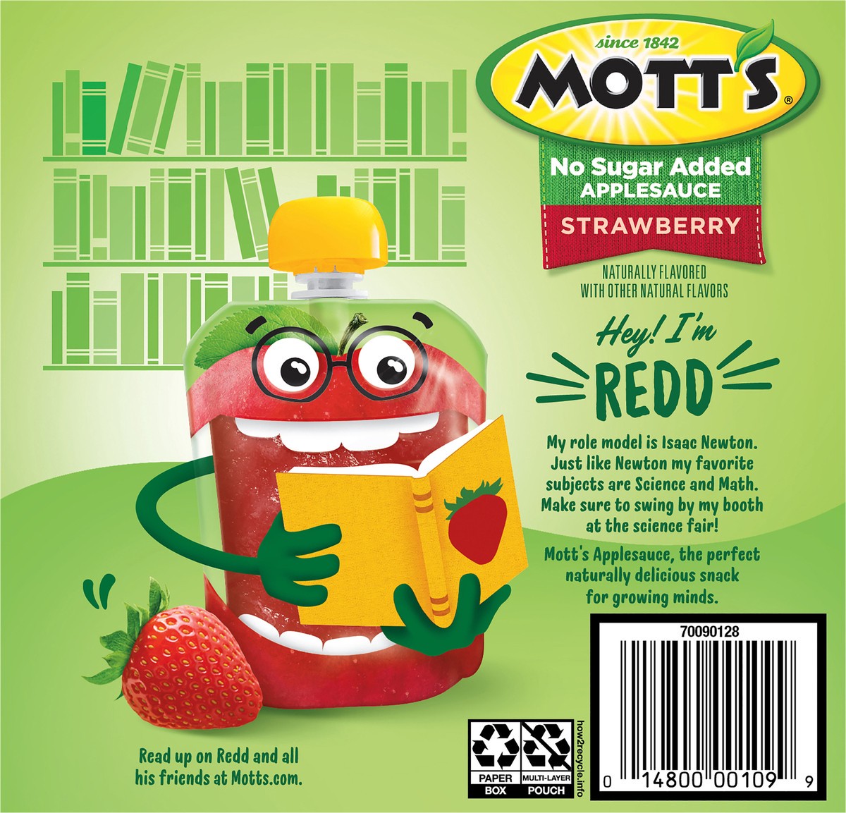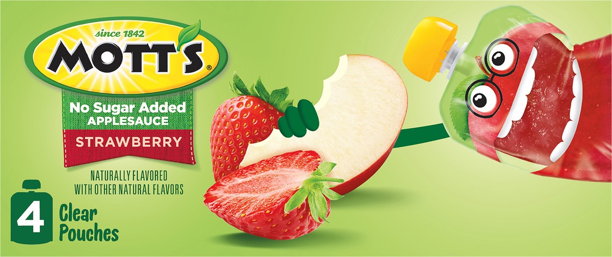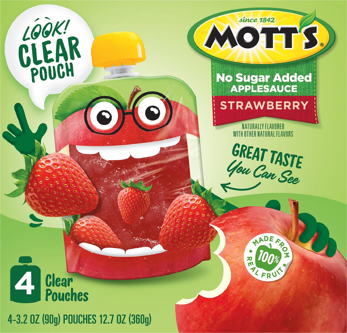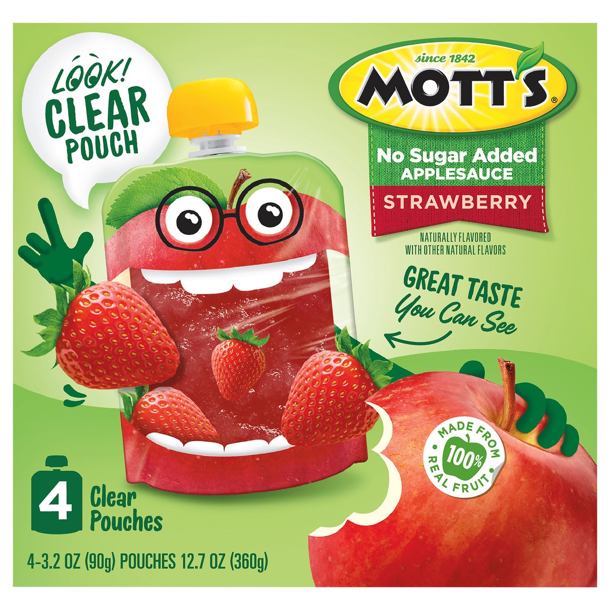 Mott's No Sugar Added Strawberry Applesauce, 3.2 oz clear pouches, 4 count - 4 ct