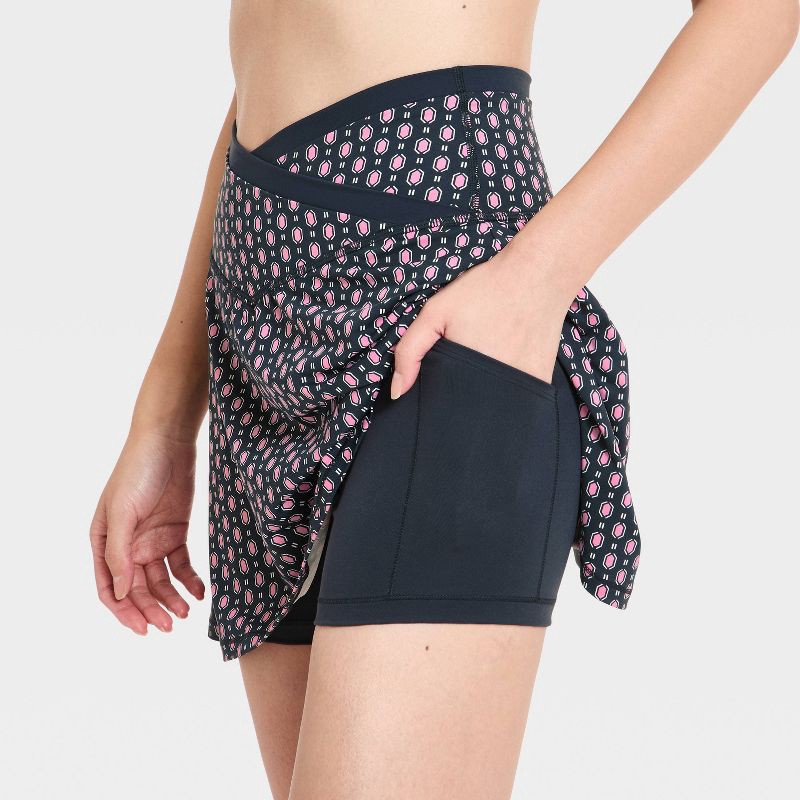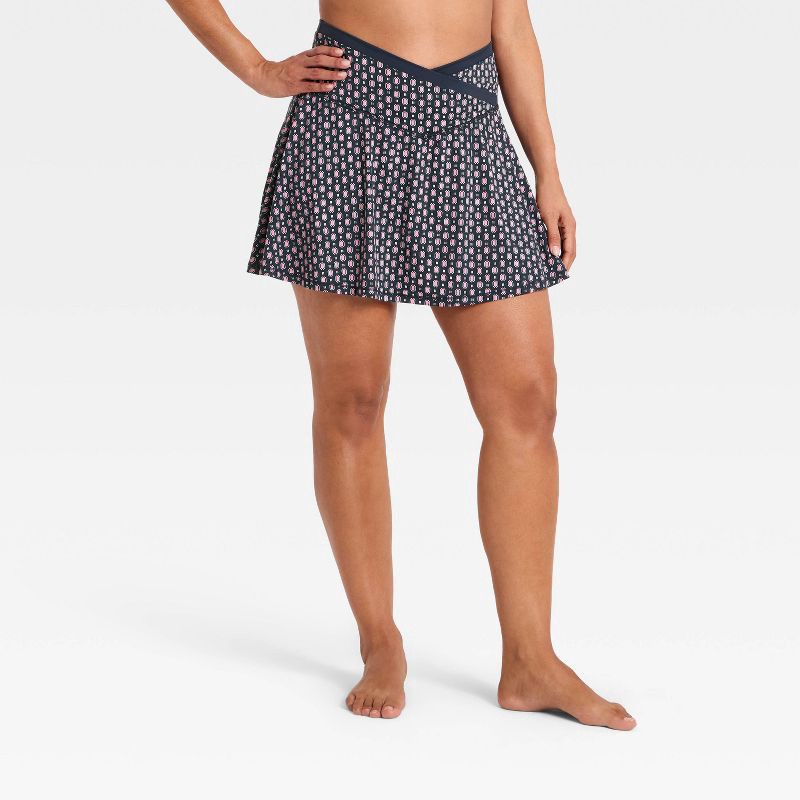 Women's Everyday Soft Mid-Rise Crossover Waistband Skort 14.5" - All In Motion™ Blue Scarf Print XXL