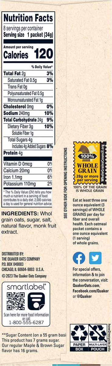 Whole Grain Oats, Sugar, Salt, Natural Flavor, Monk Fruit Extract.