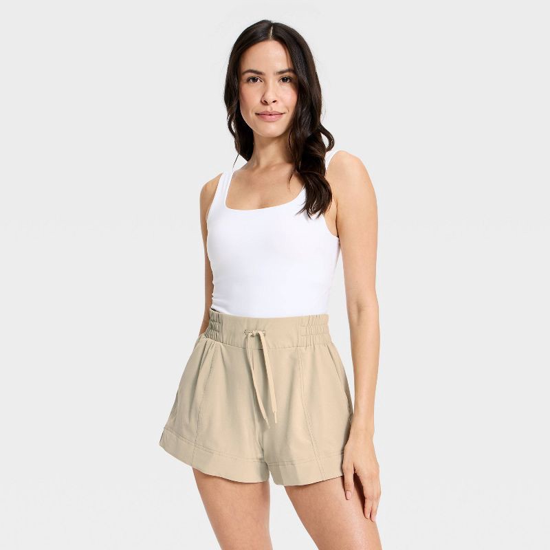 Women's Active Light Woven Mid-Rise Shorts 4" - All In Motion™ Khaki XXL