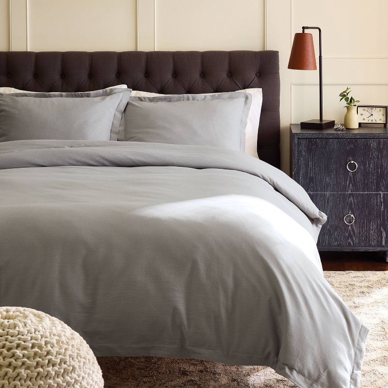 Full/Queen Casual Textured Cotton Duvet Cover and Sham Set Light Gray - Threshold™