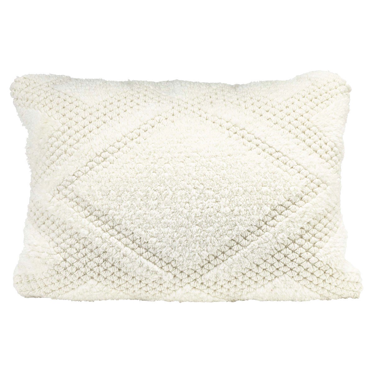 Update your living space with this soft and textural pillow in a nice neutral ivory. Pillow is generously filled with polyester and reverses to a cotton. It measures 14'' x 20'' and is a perfect addit…
