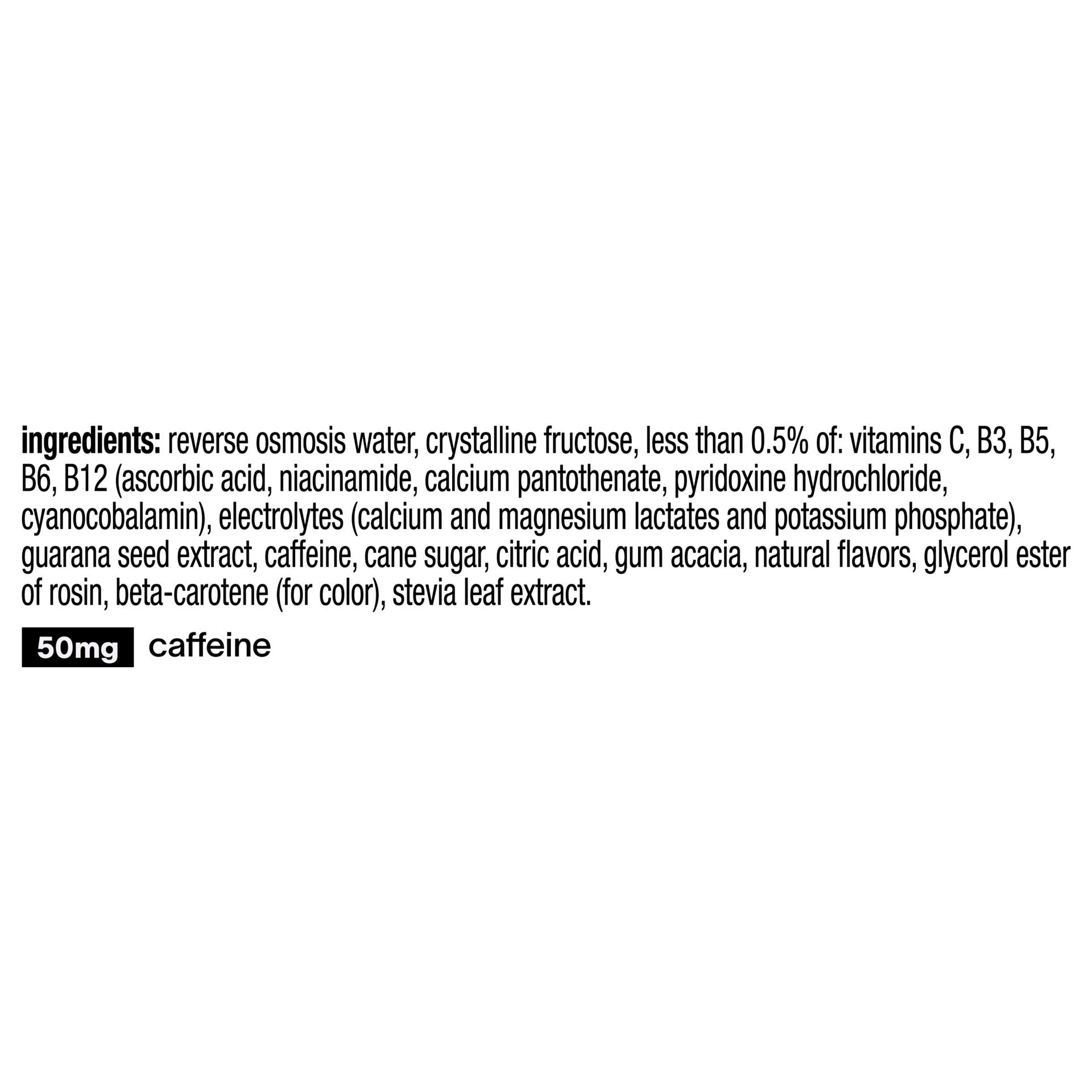 Reverse Osmosis Water, Crystalline Fructose, Less Than 0.5% Of: Vitamins C, B3, B5, B6, B12 (Ascorbic Acid, Niacinamide, Calcium Pantothenate, Pyridoxine Hydrochloride, Cyanocobalamin), Electrolytes (…