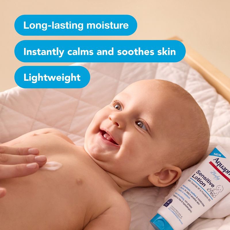 - Sensitive skin body lotion is non-sticky, non-greasy for easy baby skin care