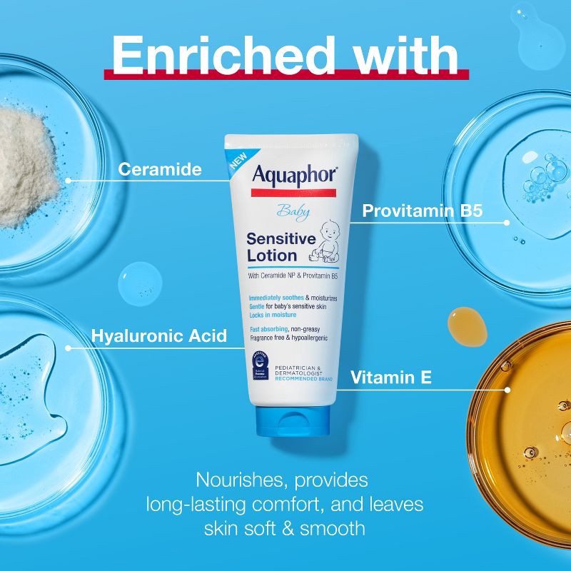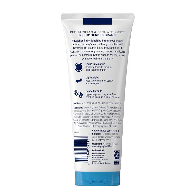 - One 8 fluid ounce tube of Aquaphor Baby Sensitive Lotion