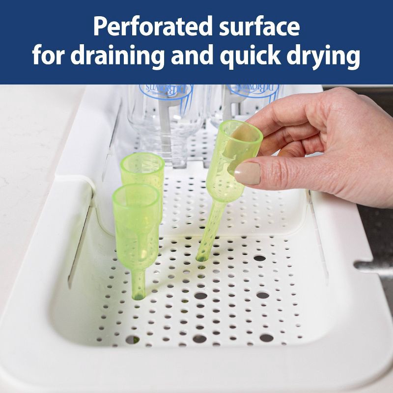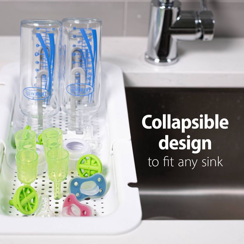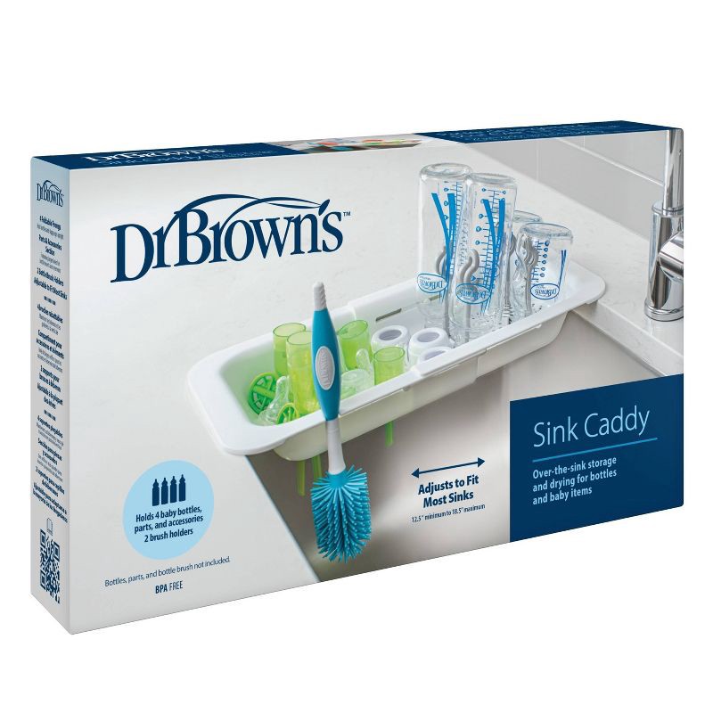 Keep bottles and baby items conveniently sink-side and ready to use! Dr. Brown's Sink Caddy fits over the sink and includes foldable prongs to fit four baby bottles or cups and a flat surface for dryi…
