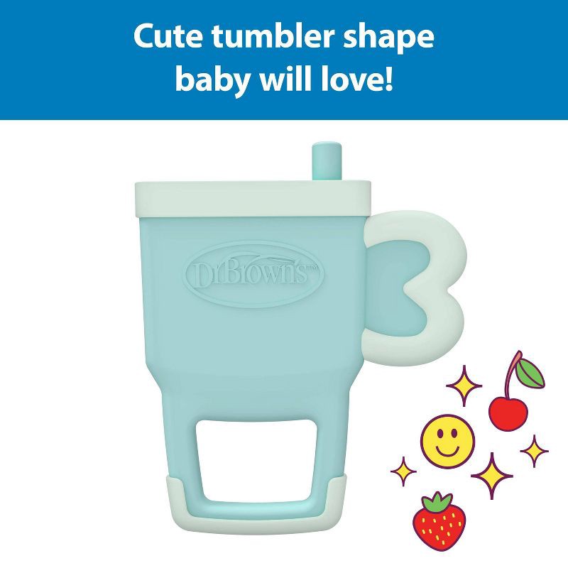 - CUTE TUMBLER DESIGN. This adorable baby teether comes in a fun tumbler shape baby will love.