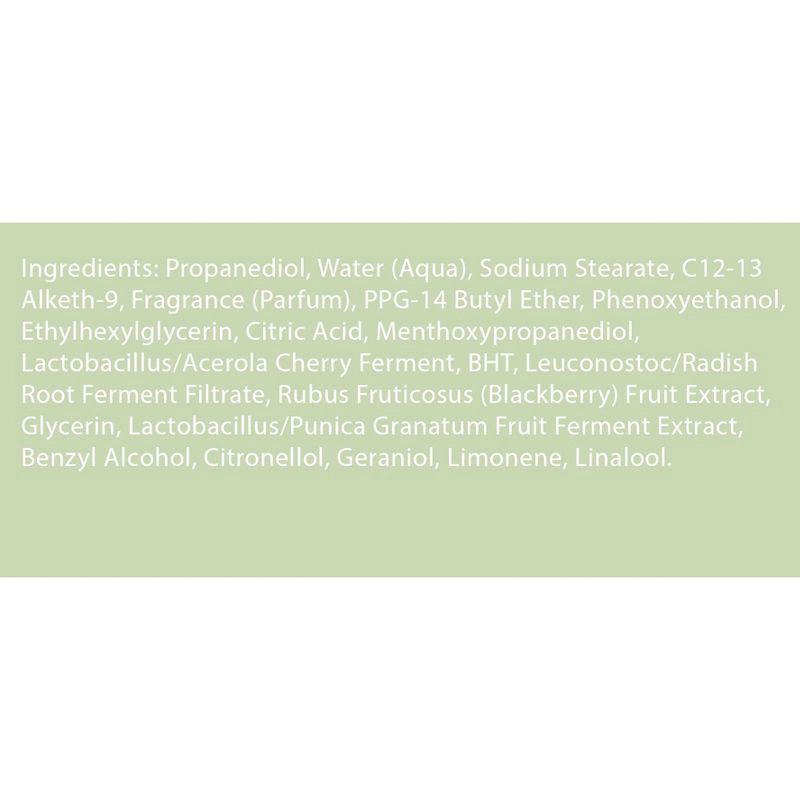 PROPANEDIOL, AQUA/WATER/EAU, BUTYLENE GLYCOL, SODIUM STEARATE, C12-13 ALKETH-9, PARFUM/FRAGRANCE, LACTOBACILLUS/ACEROLA' '