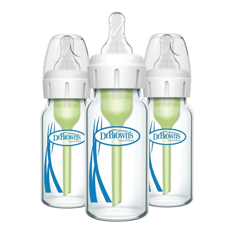 Dr. Brown's Anti-Colic Narrow Glass Options+ Baby Bottles - 4 fl oz/3pk: Level 1 Slow Flow, BPA-Free, Silicone Nipple