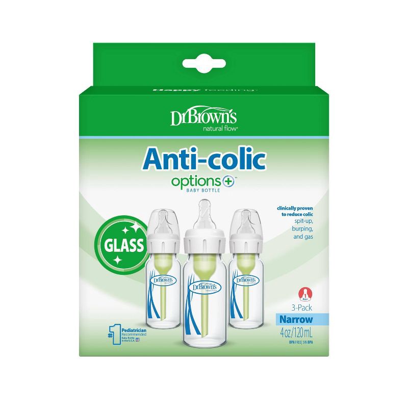 Your options have never been better with Dr. Brown's Natural Flow Anti-Colic Options+ Narrow Glass Baby Bottle. The anti-colic internal vent system is clinically proven to reduce colic. Dr. Brown's bo…