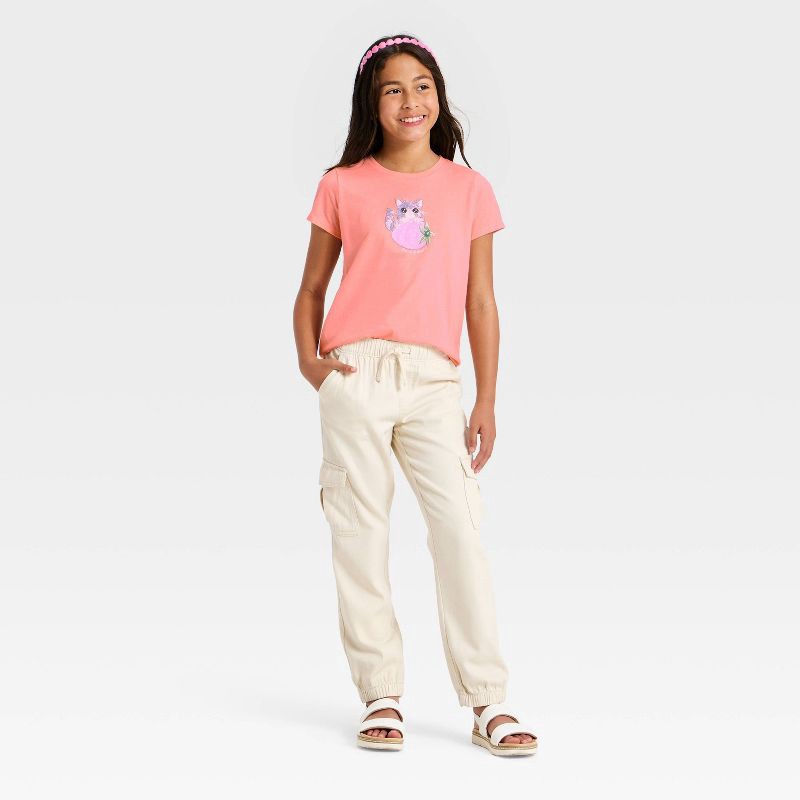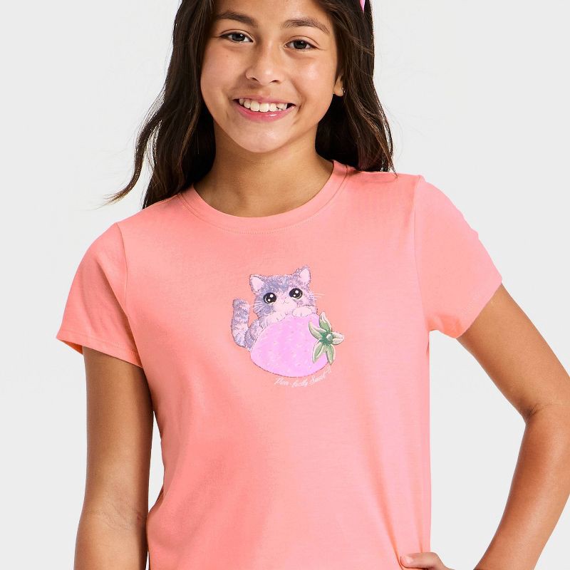 Girls' Short Sleeve 'Cat' Graphic T-Shirt - Cat & Jack ™ Peach Pink M