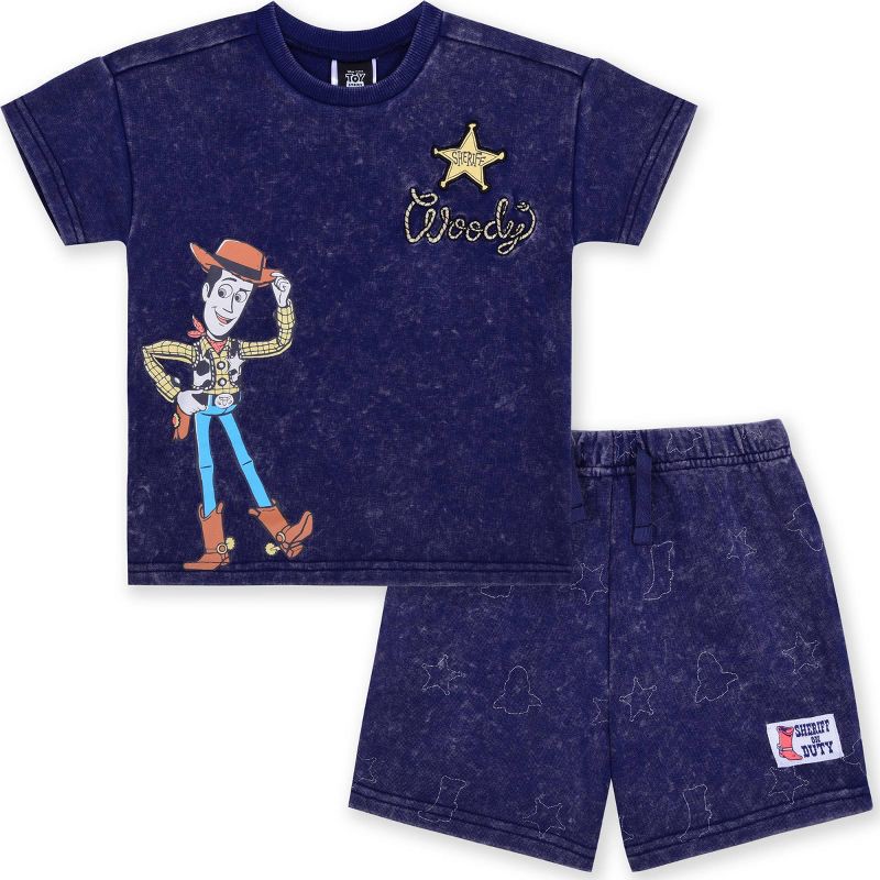 Bring some cool Toy Story flair to their everyday wardrobe with this 2-Piece Disney Toy Story Woody T-Shirt & Shorts Set. Made from cotton-polyester blend French terry fabric for a comfy wear, this se…