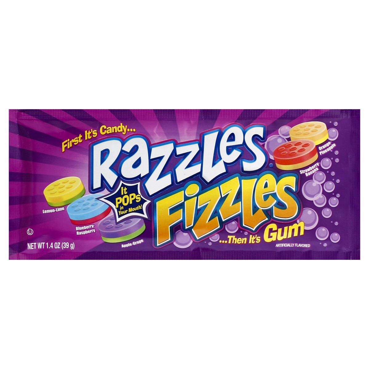 Sugar, Gum Base, Citric Acid, Sodium Bicarbonate, Dextrose, Calcium Stearate, Artificial and Natural Flavors, Artificial Colors (FD&C Red 40 Lake, Blue 1 Lake, Yellow 5 Lake, Yellow 6 Lake), BHT (to M…