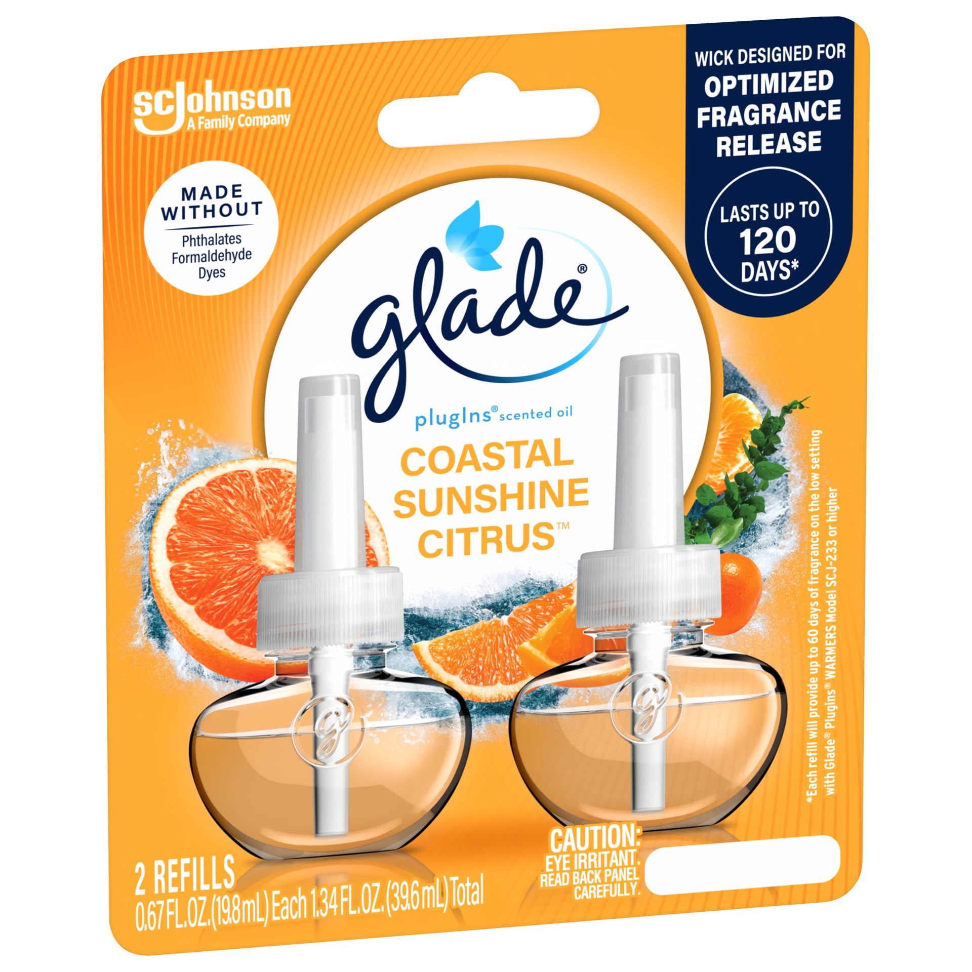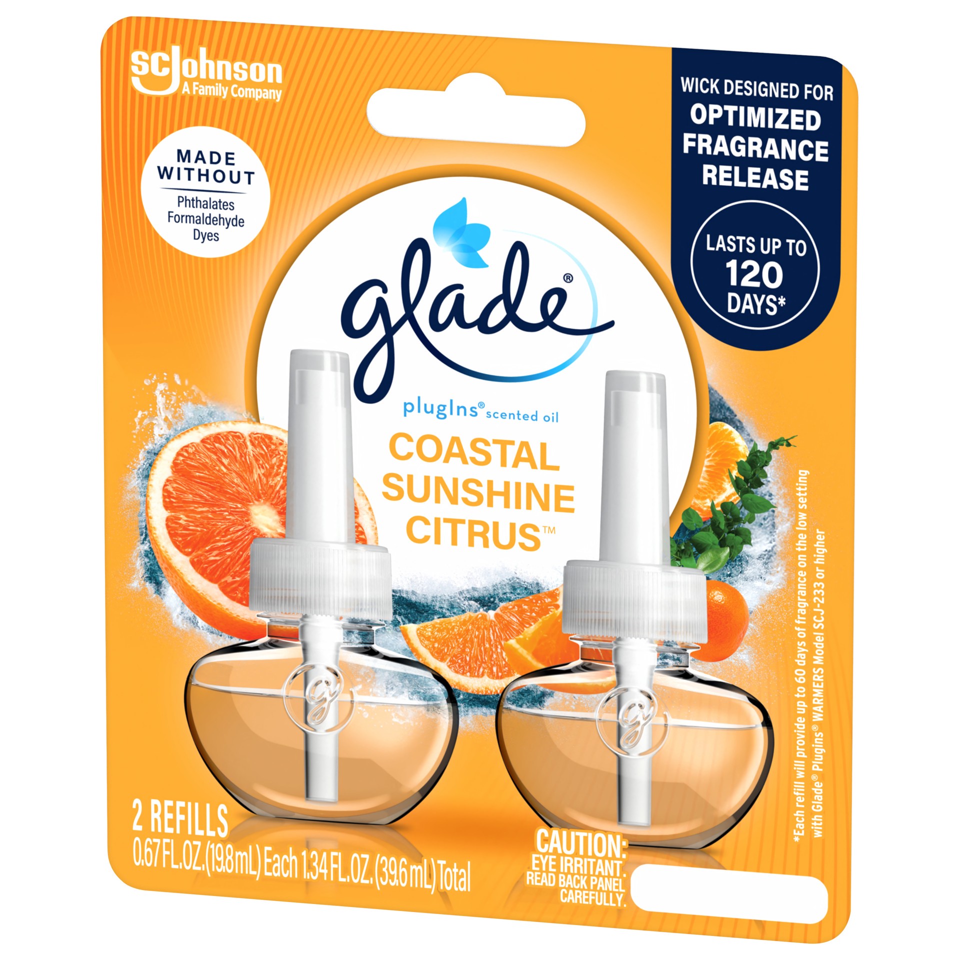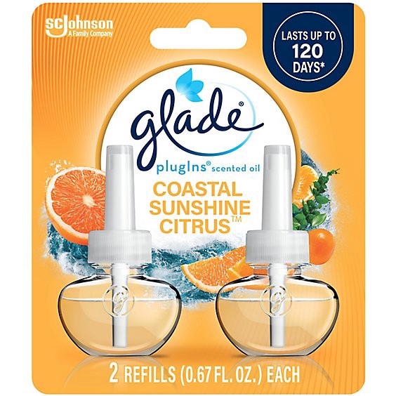 Make happiness your Mood of the Moment™ with Glade PlugIns Scented Oil Refills in Coastal Sunshine Citrus. Crafted by master perfumers with essential oils and a breath of coastal air, a splash of citr…