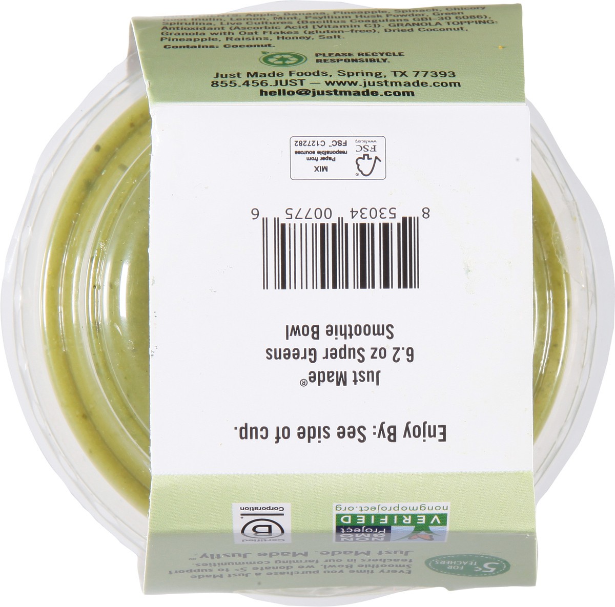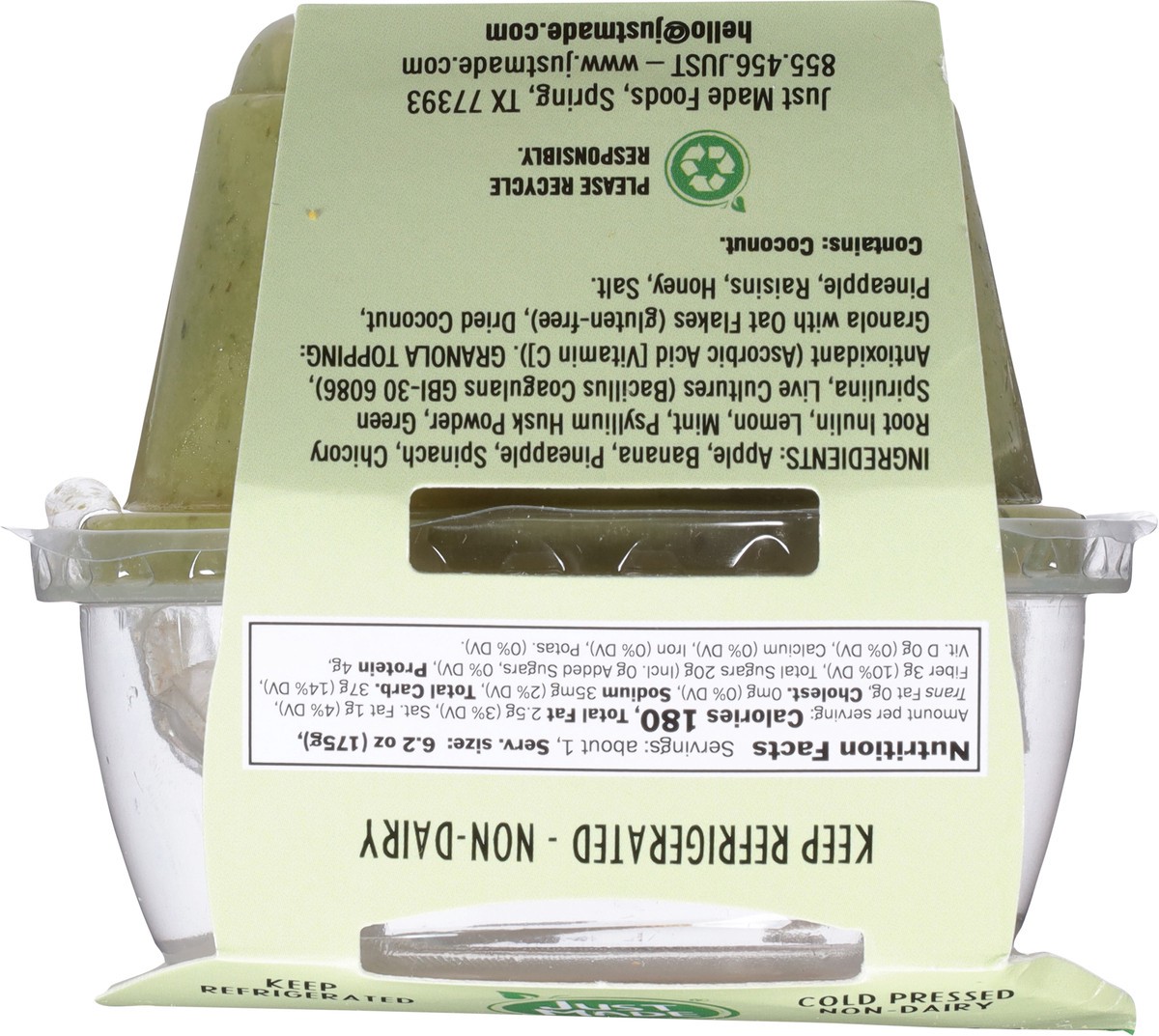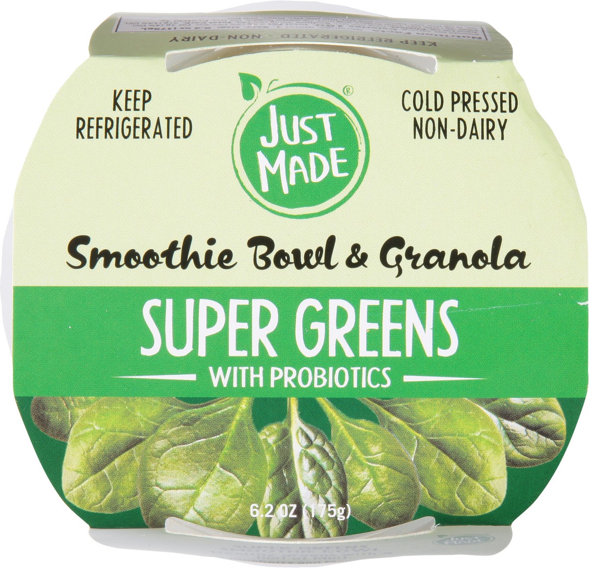 Refrigerated, ready-to-eat, smoothie bowl made with Spinach, Mint, Green Spirulina, Banana, and Pineapple. With added probiotics and crunchy granola topping, this smoothie bowl has no added sugar and …