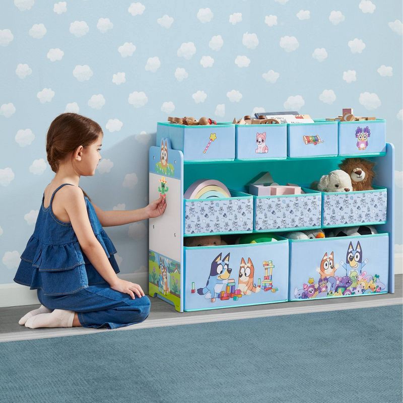 Delta Children Deluxe 9 Bin Design and Store Toy Organizer - Bluey: MDF, 3 Shelves, Traditional Decor, 10 Pieces