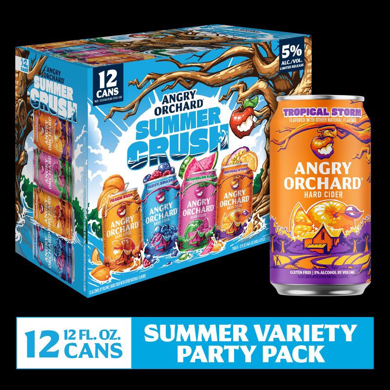 Angry Orchard's Summer Crush Variety Pack has the perfect summer mix to embrace good weather and good vibes! This variety pack features four flavors: Peach Rush, Berry Smash, Watermelon Slice, and Tro…