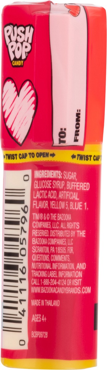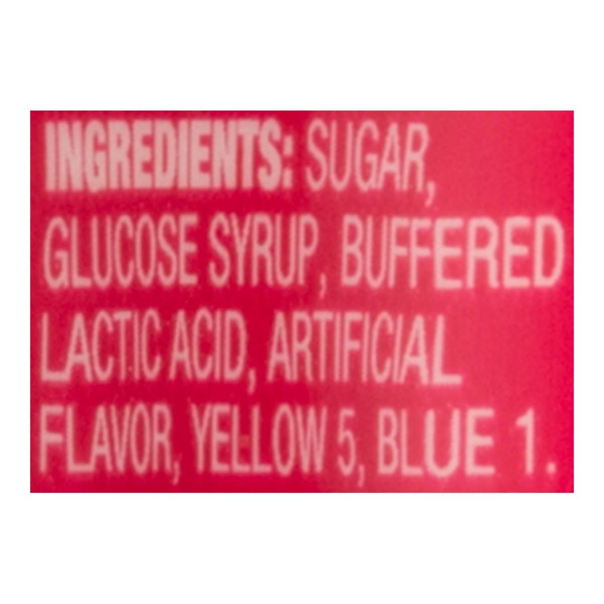 Sugar, Glucose Syrup, Buffered Lactic Acid, Artificial Flavor, Yellow 5, Blue 1.