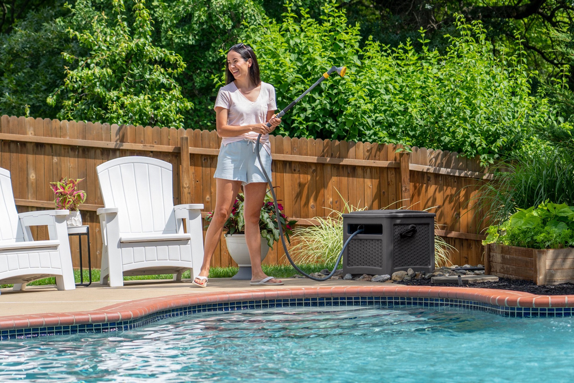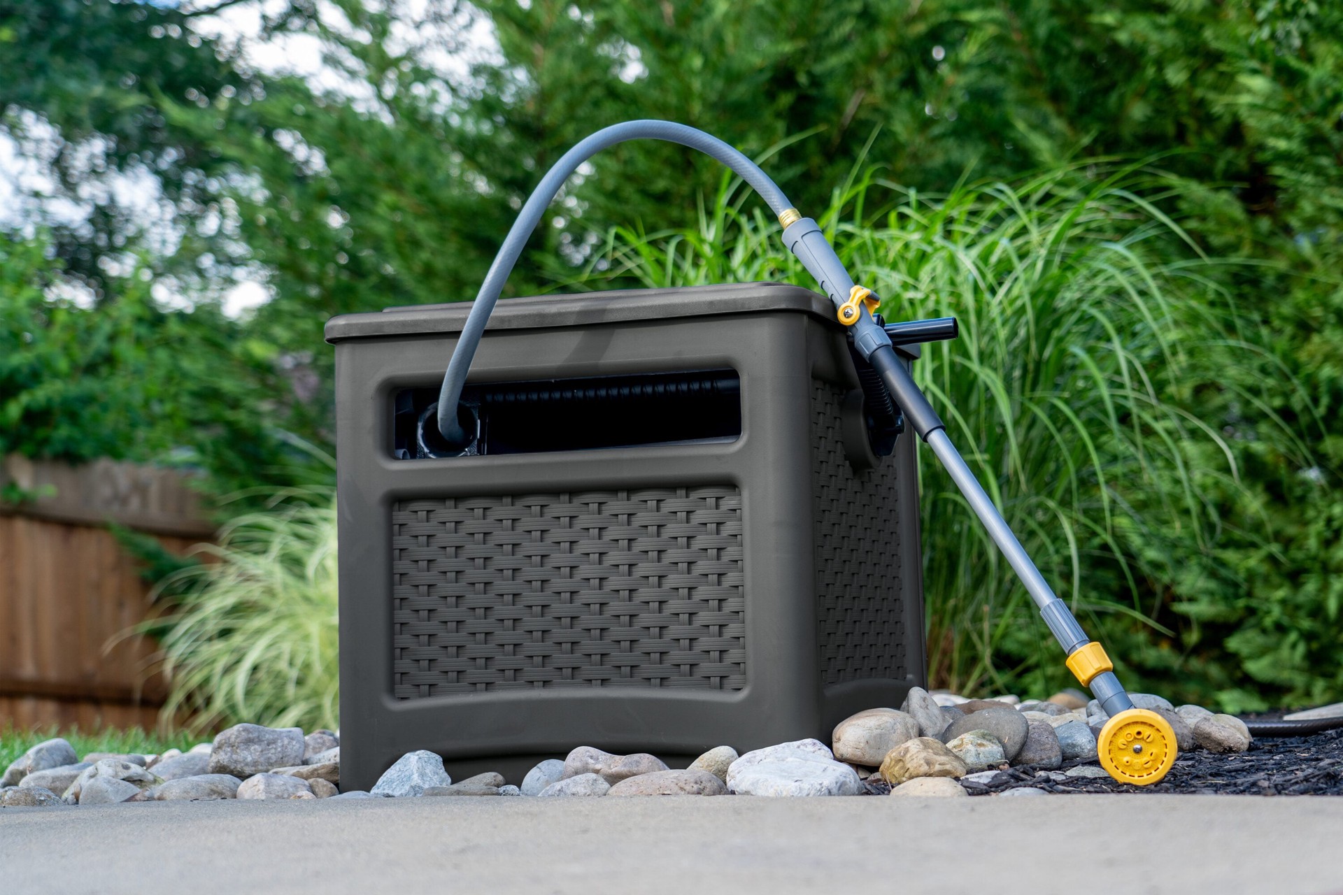 Suncast Wicker Hideaway Plastic 225-ft Container Hose Reel