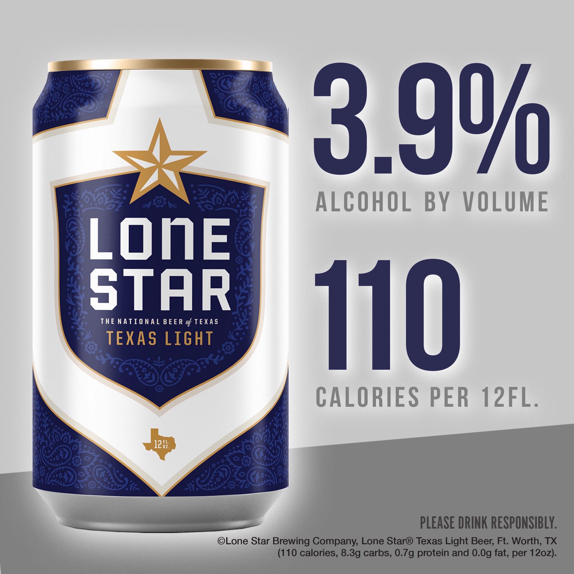 Lone Star Texas Light Beer - 12 Pack, 12-oz cans. Light lager - 3.9% ABV. Lone Star Texas Light mimics its full-calorie counterpart, Lone Star Beer, with an award winning premium light beer taste. For…
