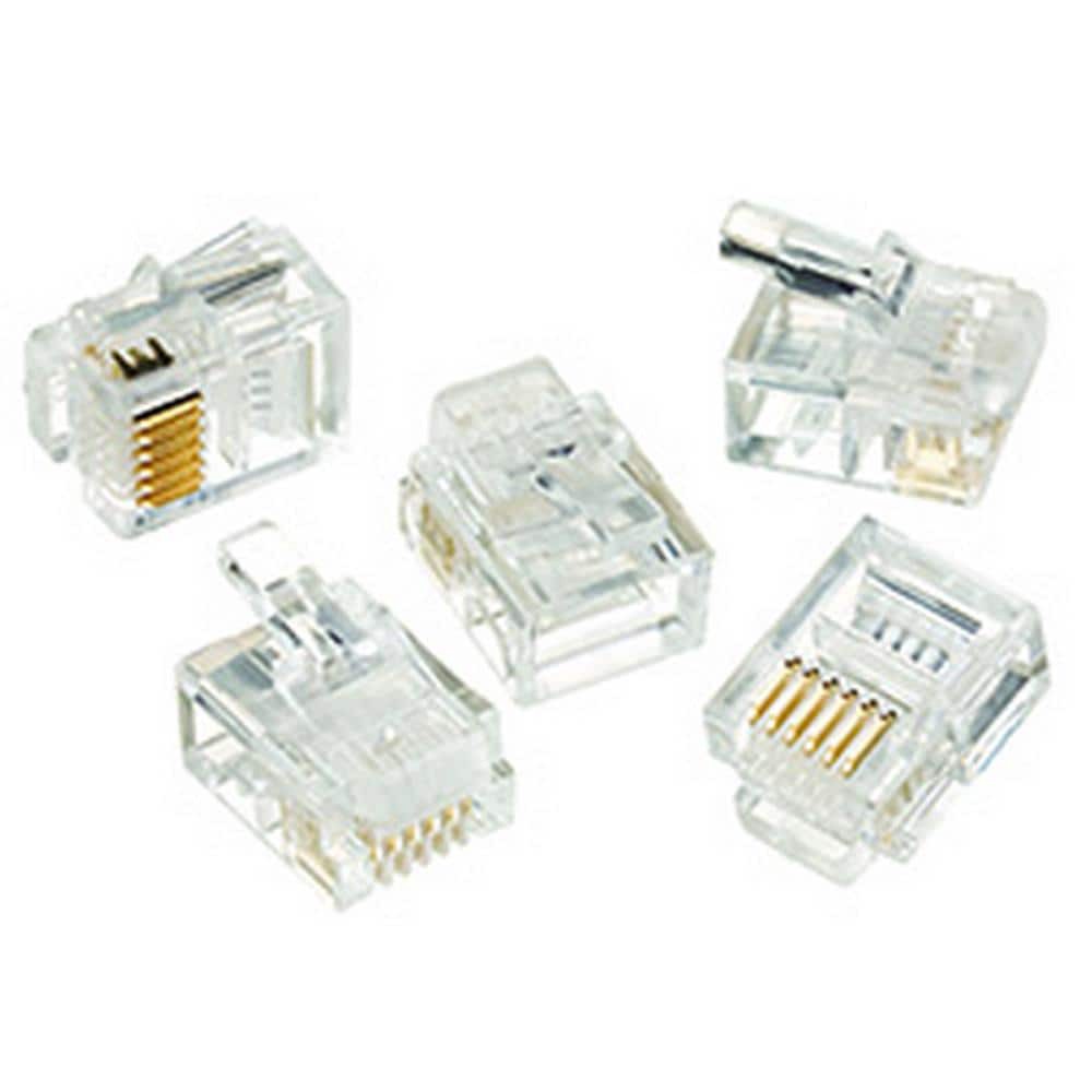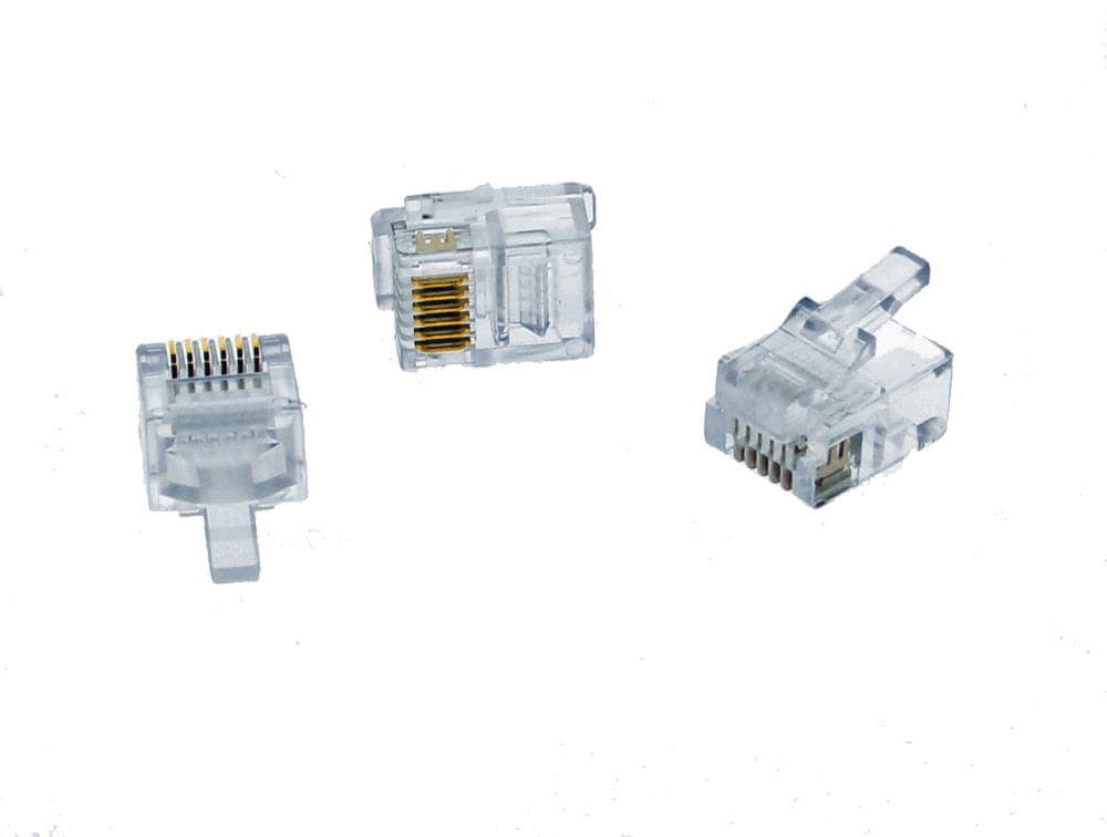6 Position, 6 contact RJ-11 modular plug for CAT 3/5e and traditional phone wire. 50 micro-inch gold plating on contact mating area for long term reliability in connectivity, even after hundreds of ma…