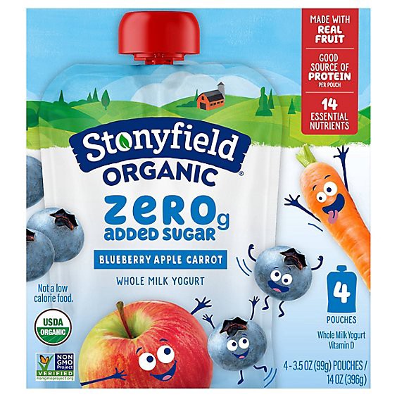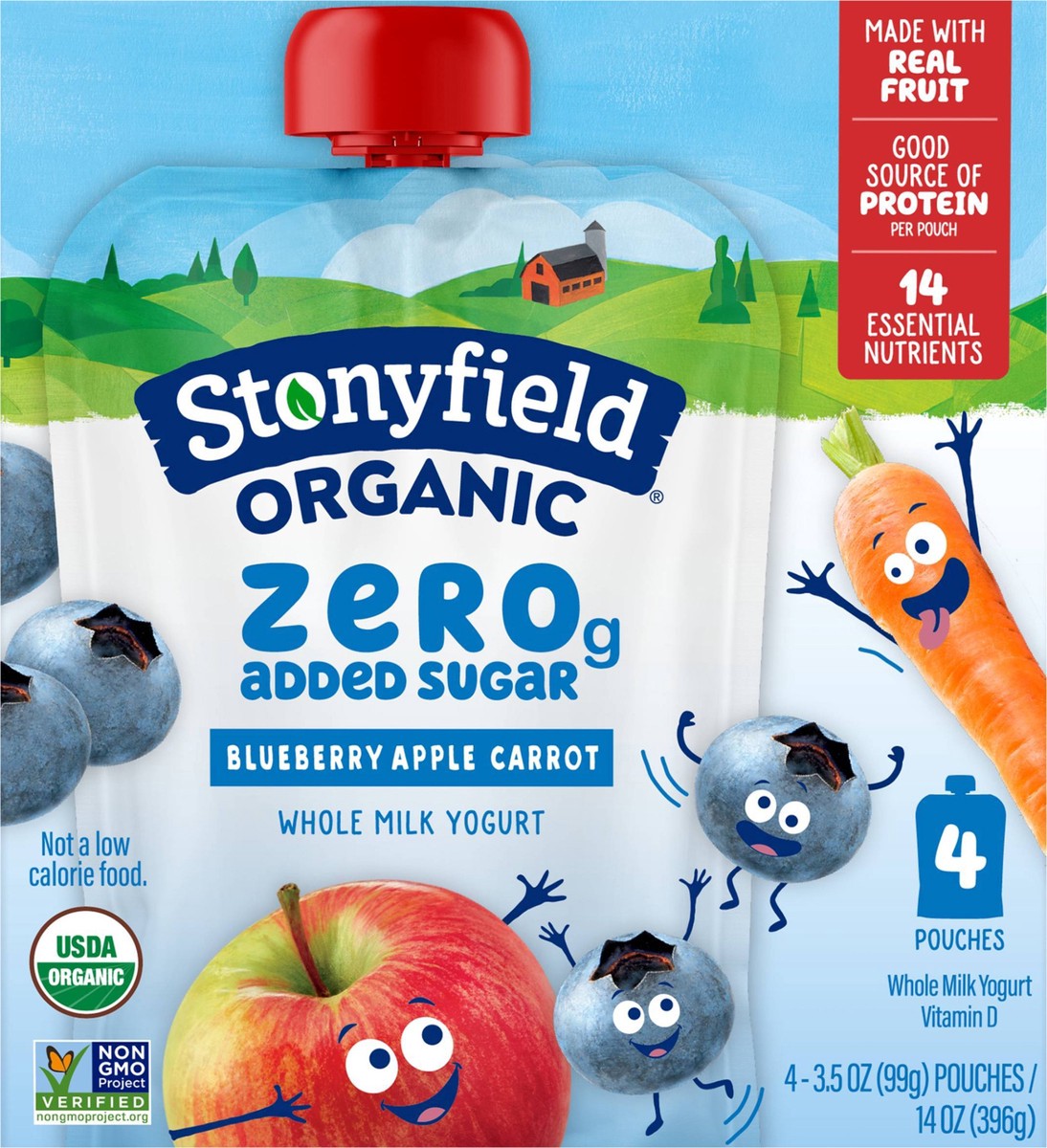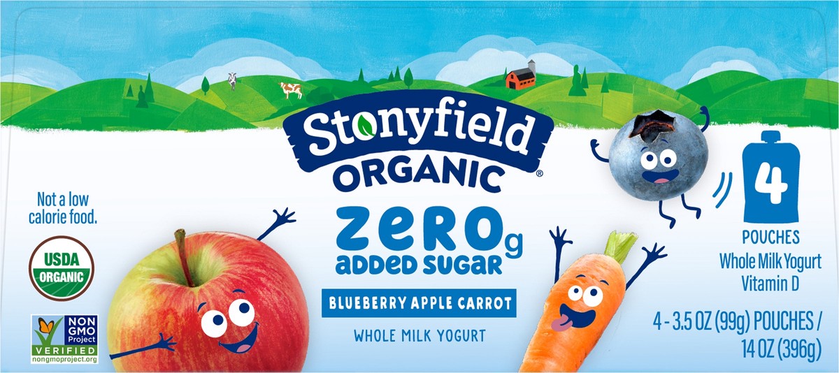 Your kids'' favorite squeezable snack still goes everywhere, but is leaving the added sugar behind. Stonyfield Organic Kids Zero Grams Added Sugar Blueberry Apple Carrot Whole Milk Yogurt Pouch comes …