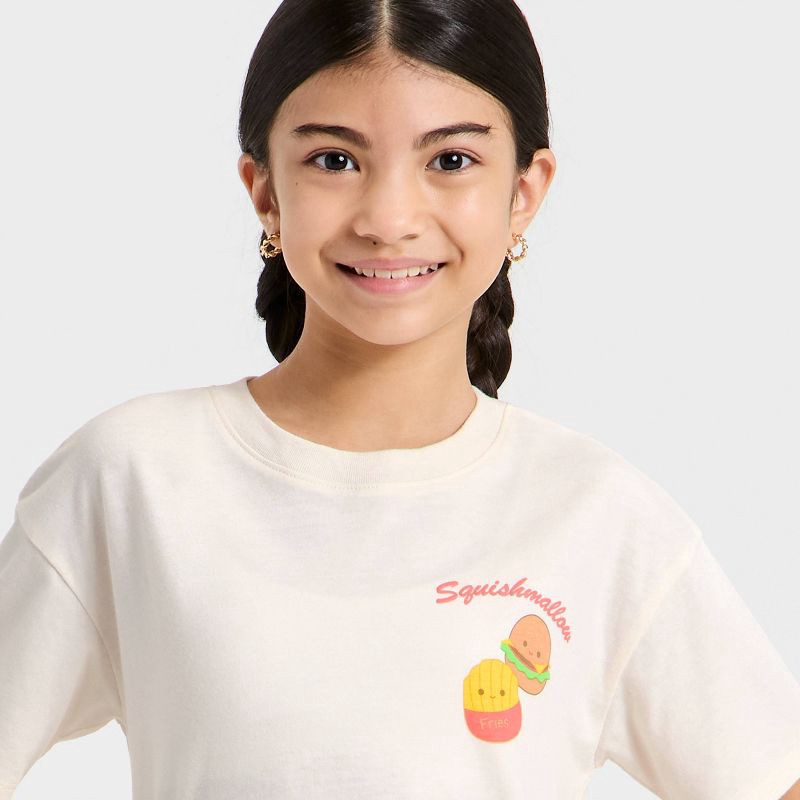 Girls' Squishmallows 'Treat Yourself' Oversized Front and Back Graphic Short Sleeve T-Shirt - Ivory XS