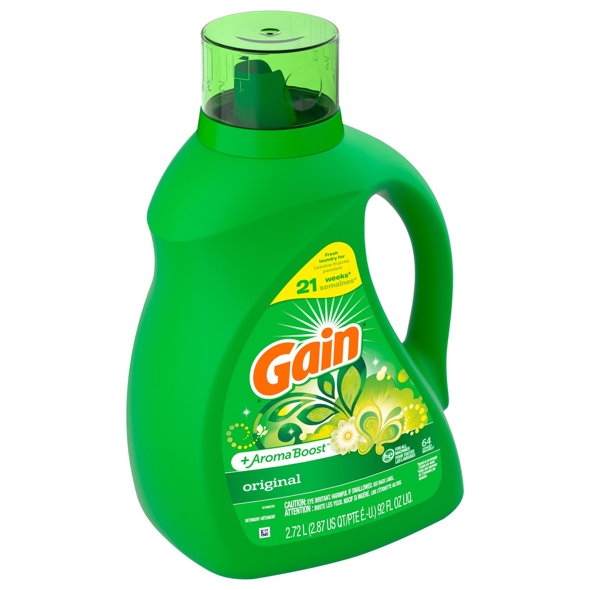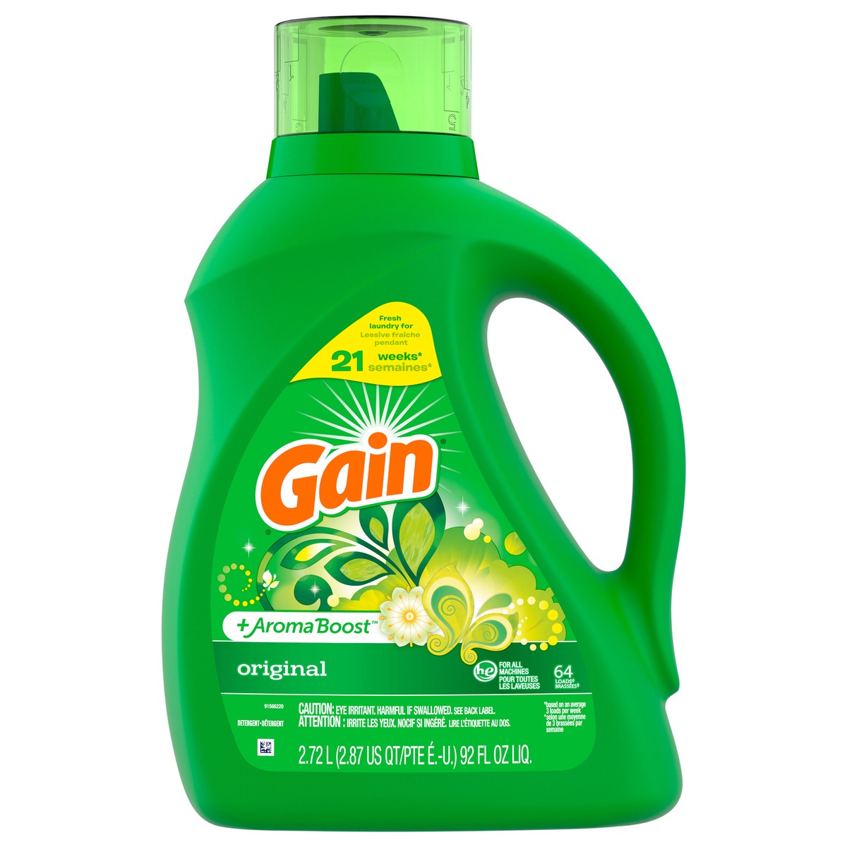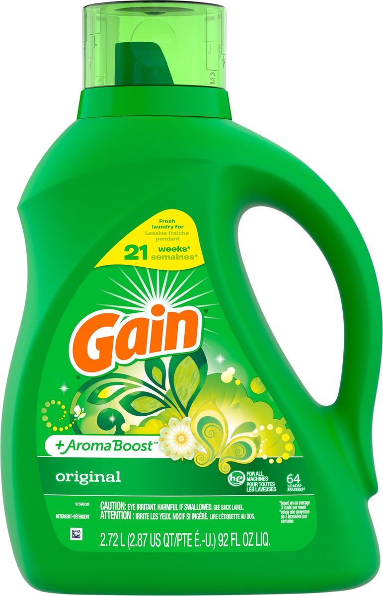 Gain + Aroma Boost Liquid Laundry Detergent, Original, 64 Loads, 92 fl oz, HE Compatible