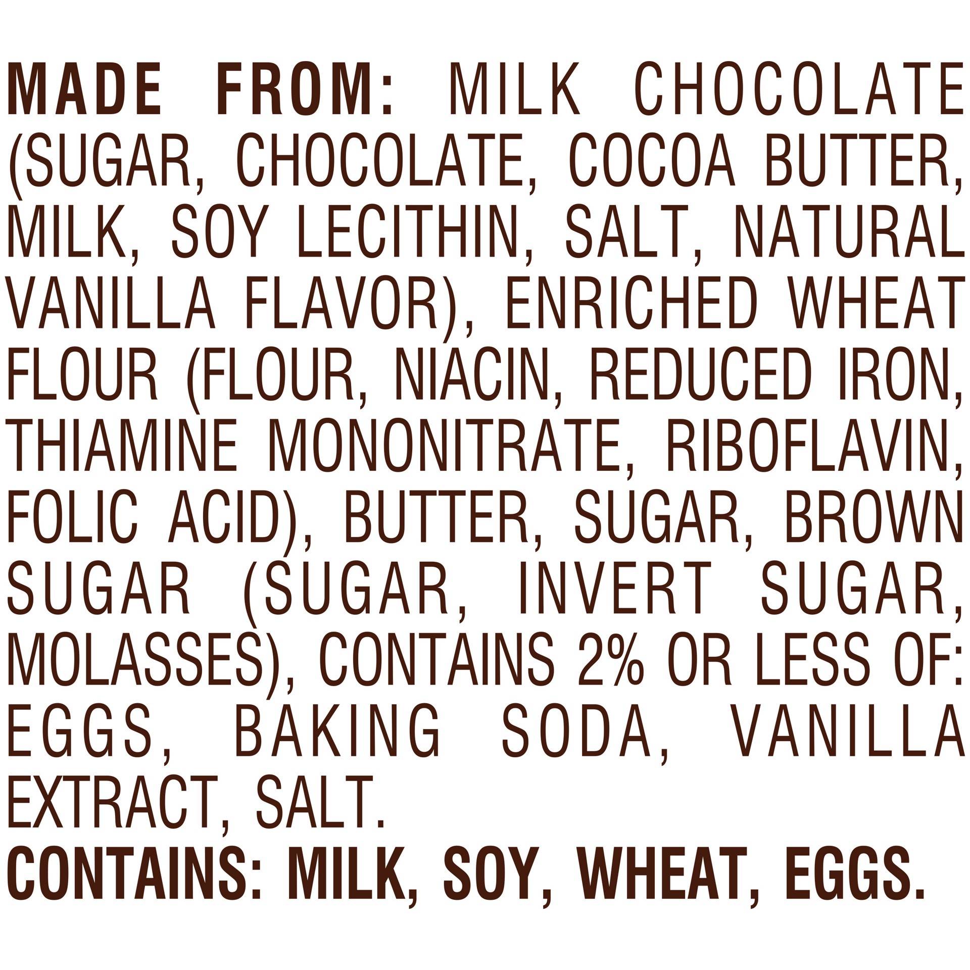 MADE FROM: MILK CHOCOLATE (SUGAR, CHOCOLATE, COCOA BUTTER, MILK, SOY LECITHIN, SALT, NATURAL VANILLA FLAVOR), ENRICHED WHEAT FLOUR (FLOUR, NIACIN, REDUCED IRON, THIAMINE MONONITRATE, RIBOFLAVIN, FOLIC…