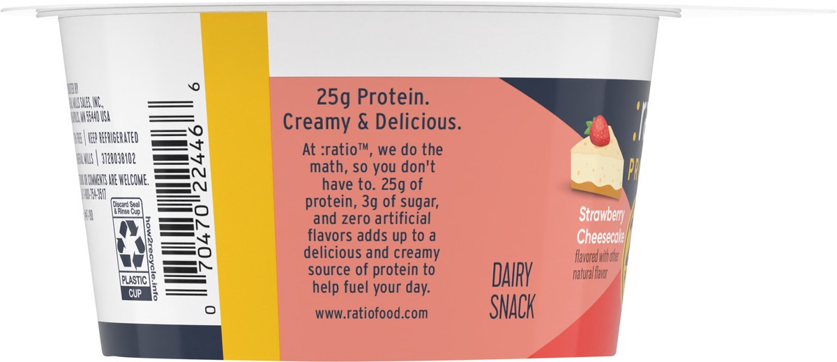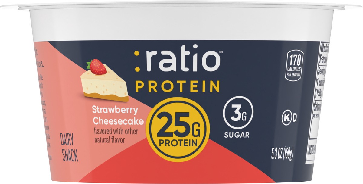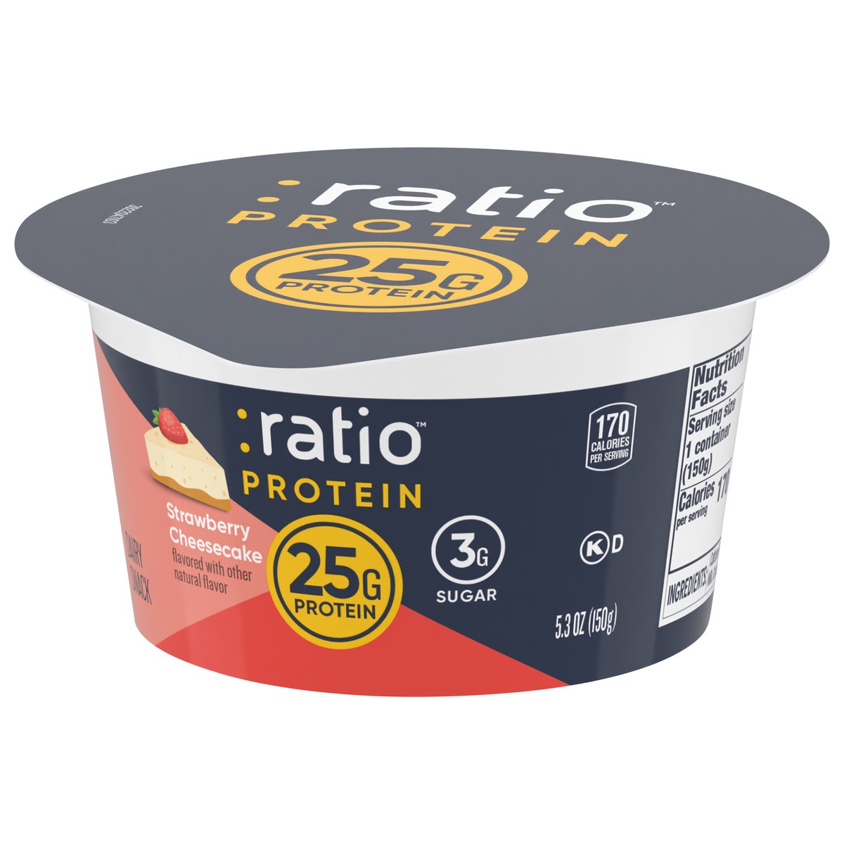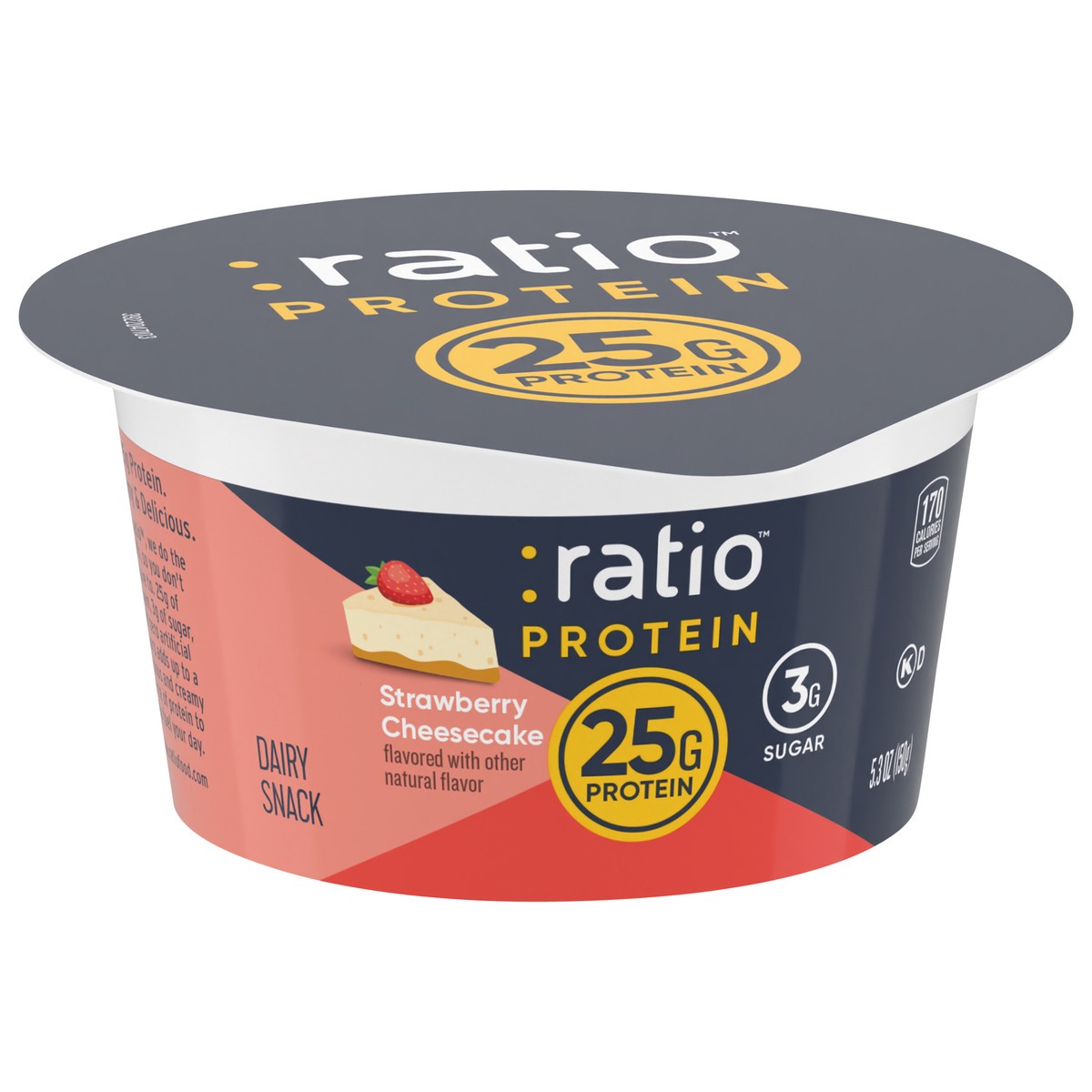 Ratio Protein Strawberry Cheesecake Flavored Yogurt Cultured Dairy Snack is big on protein AND taste. Each snack cup brings you the most protein in the yogurt aisle per serving! Tracking your macros a…