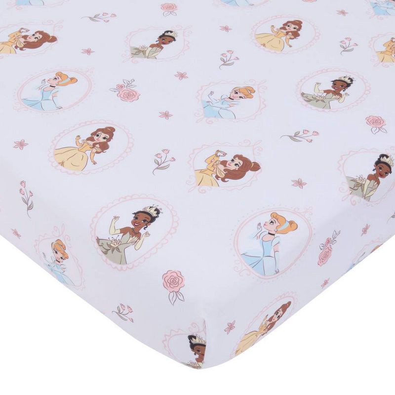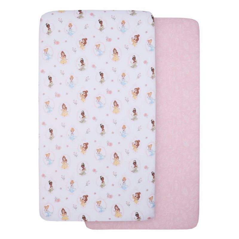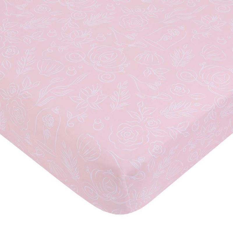 NoJo Disney Princess Dreams in Bloom Crib Sheet Set - 3pc: Classic Patterns, Knitted, Fits 8" Mattress