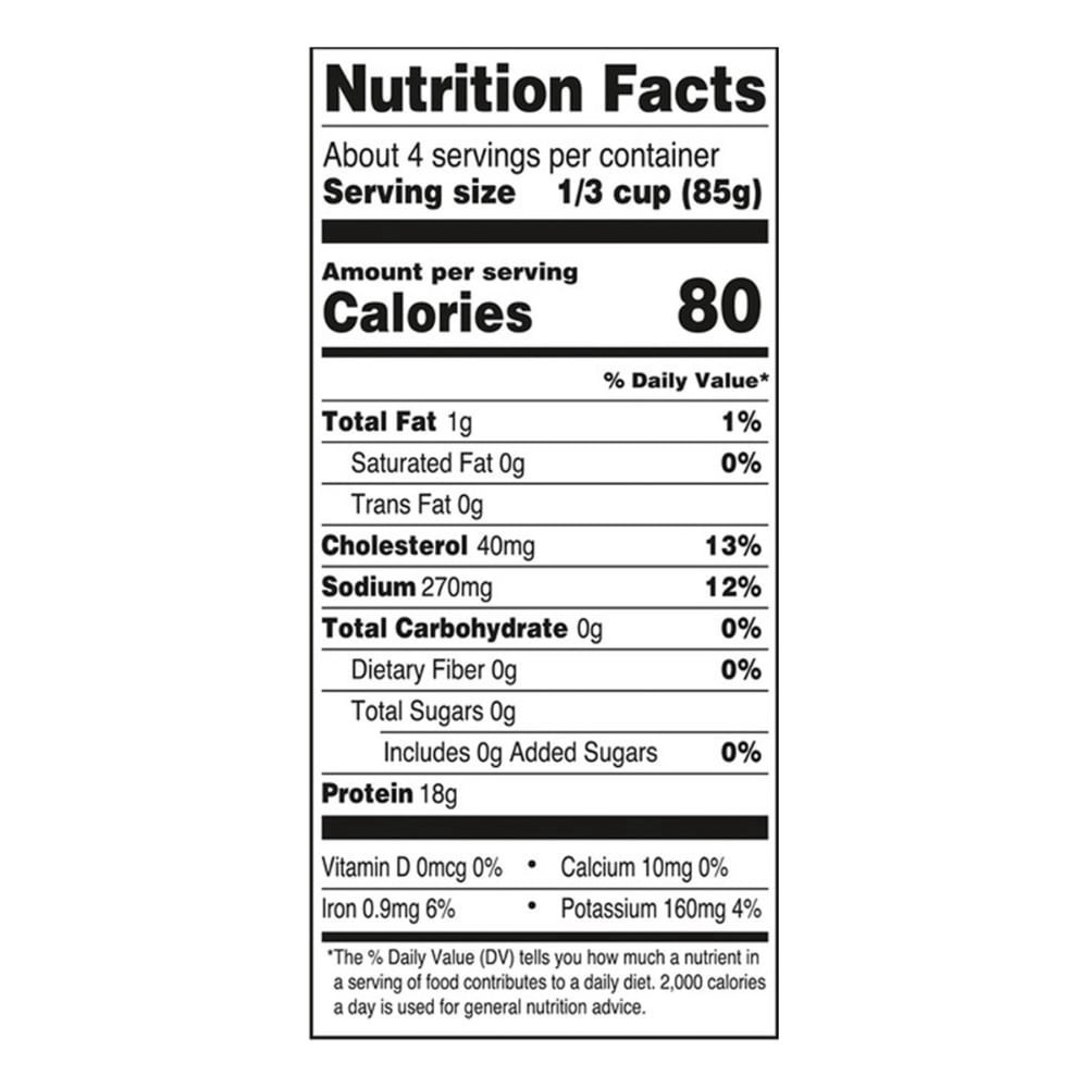 Tuna, Water, Vegetable Broth (Peas, Carrots), Salt.
