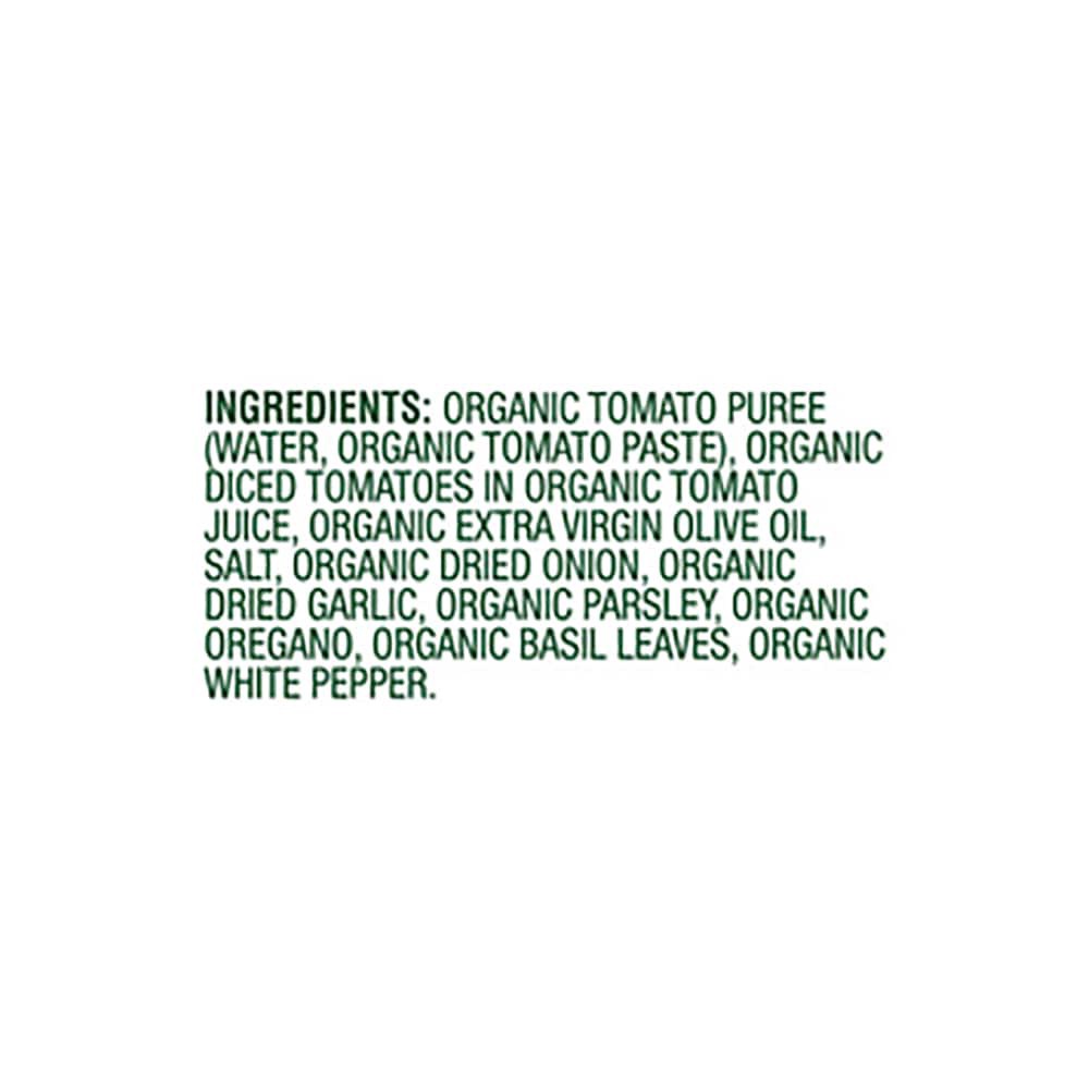 Organic Tomato Puree (Water, Organic Tomato Paste),Organic Diced Tomatoes in Organic Tomato Juice, Organic Extra Virgin Olive Oil,Salt, Organic Dried Onion, Organic Dried Garlic, Organic Parsley,Organ…
