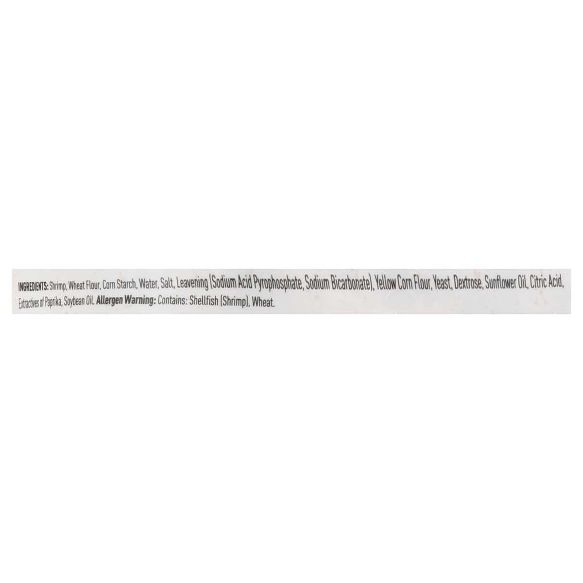 Shrimp, Wheat Flour, Corn Starch, Water, Salt, Leavening (Sodium Acid Pyrophosphate, Sodium Bicarbonate), Yellow Corn Flour, Yeast, Dextrose, Sunflower Oil, Citric Acid, Extractives of Paprika, Soybea…