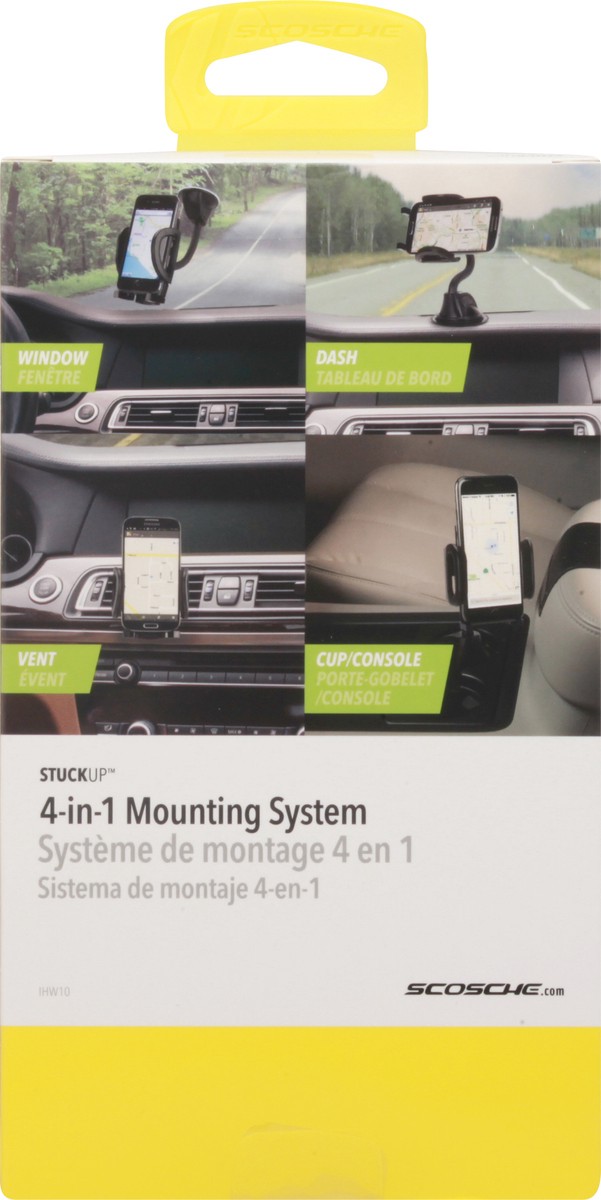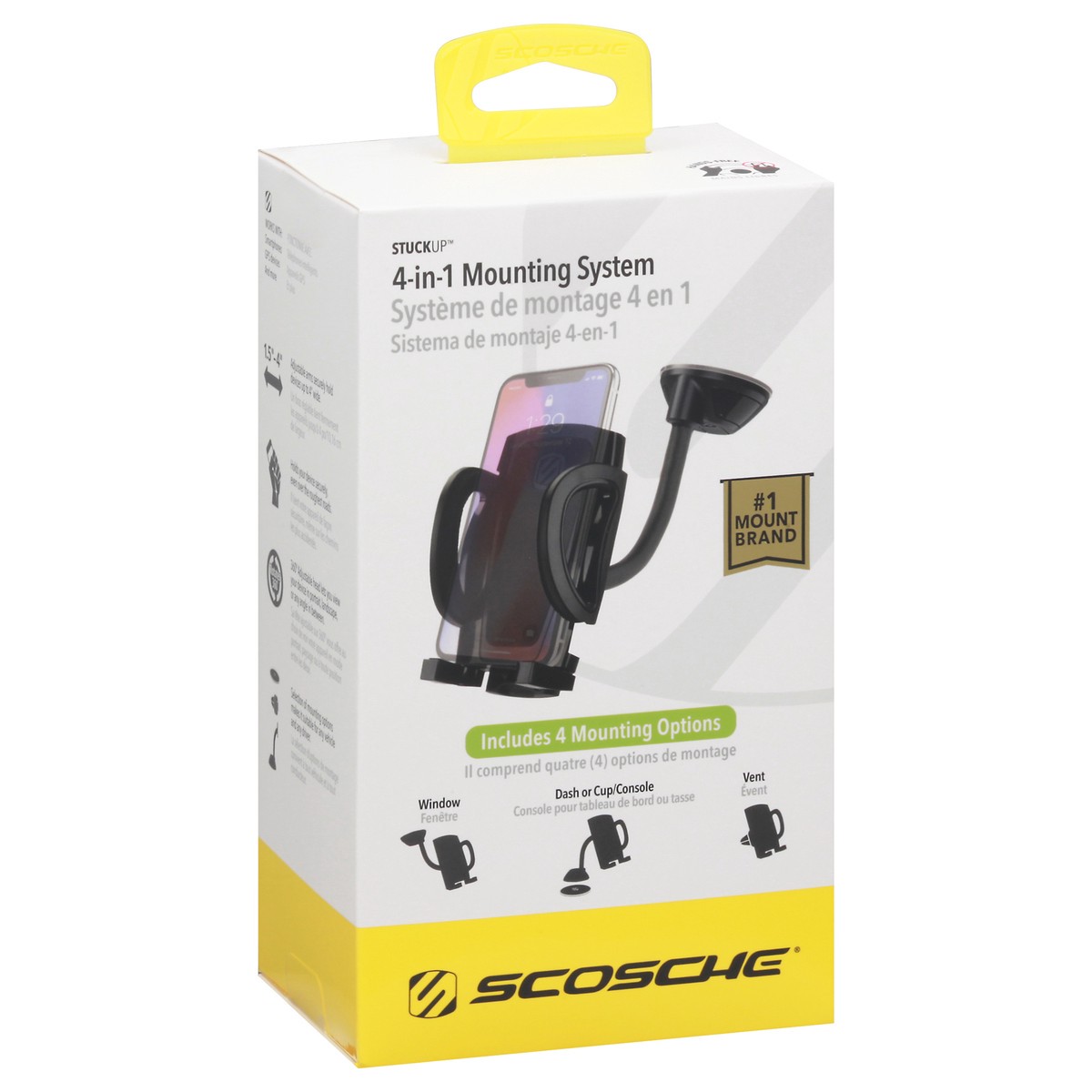 StuckUp. 4-in-1 Mounting system. No. 1 Mount brand. Includes 4 mounting options. Windows, dash or cup/console, vent. Works with: Smartphones GPS devices and more. 1.5 inch – 4 inch. Adjustable arms se…