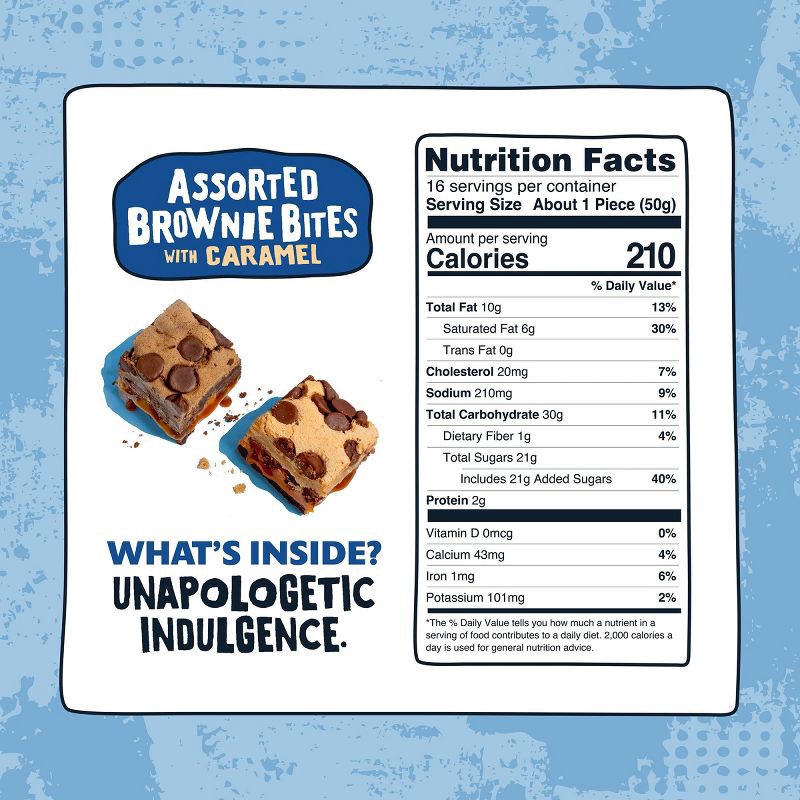 A greatest hits album, brownie style, featuring Cookie Dough, Original Pecan, Confetti, and Triple Chocolate. Sixteen rich, gooey bites—each layered with caramel and crafted in four iconic flavors. Wh…