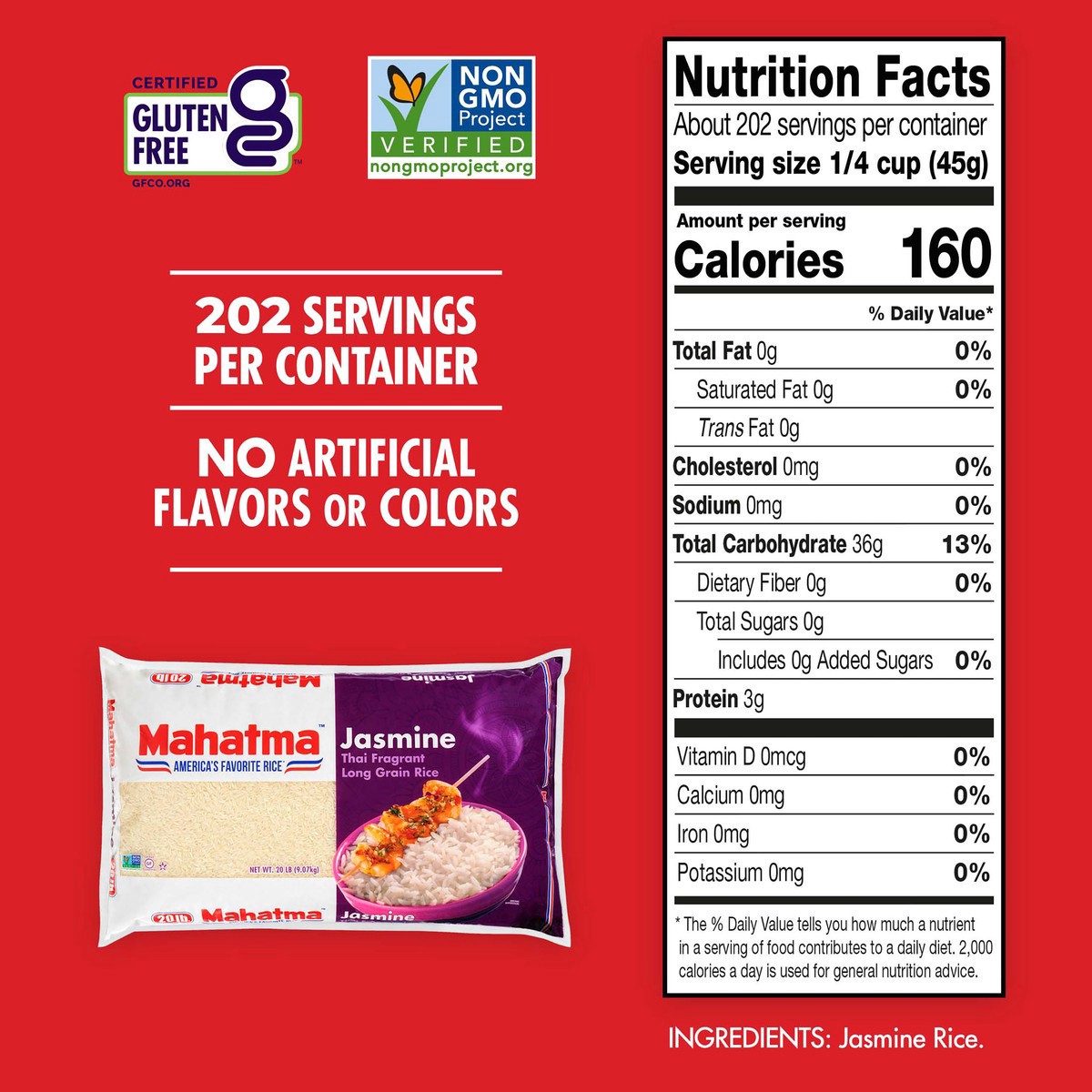 Mahatma Jasmine Thai fragrant long grain rice offers you exactly what you need when you''re looking to satisfy a craving. Each 20 lb. bag includes a fluffy texture that will add a delicious taste to a…