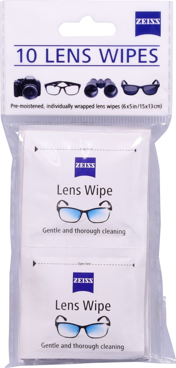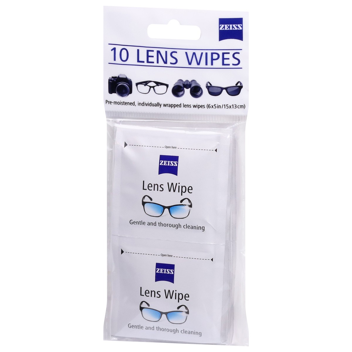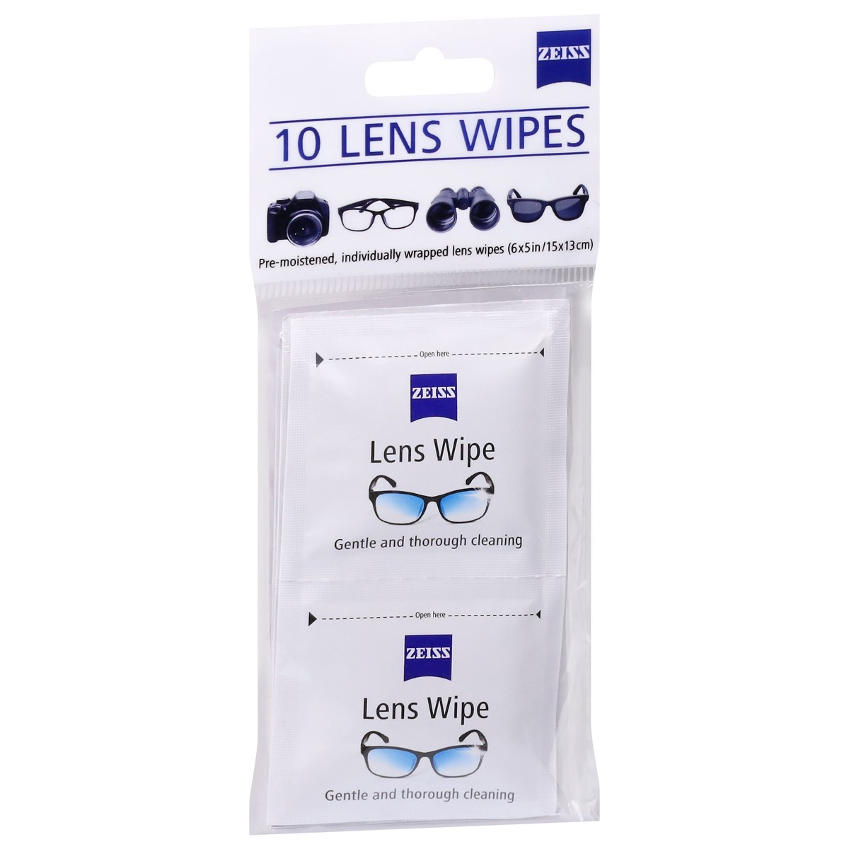 ZEISS Lens Wipes safely and quickly clean multiple lens surfaces. Individually wrapped and specially formulated with a gentle solution, these wipes remove smudges and dirt, leaving lenses free of scra…