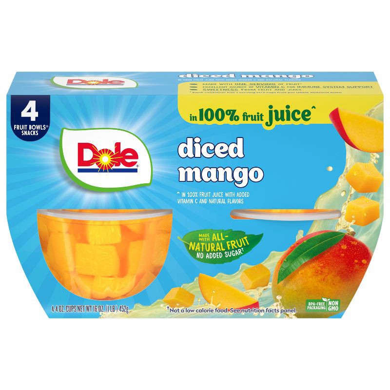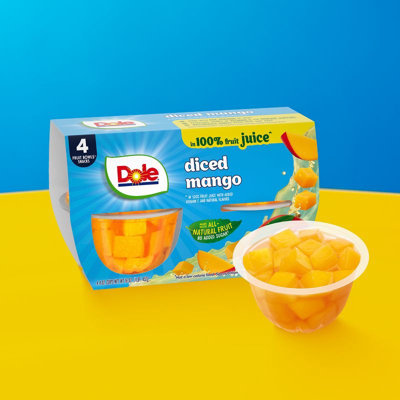 - Save time on food prep with our delicious pre-cut Dole Diced Mango Fruit Bowls Snacks; No need to wash, peel, and cut the fruit to enjoy the sweet and juicy flavor of mango