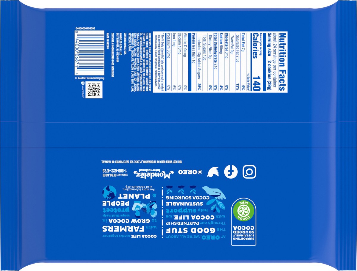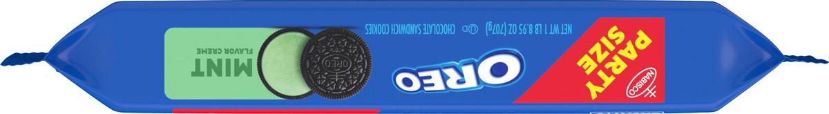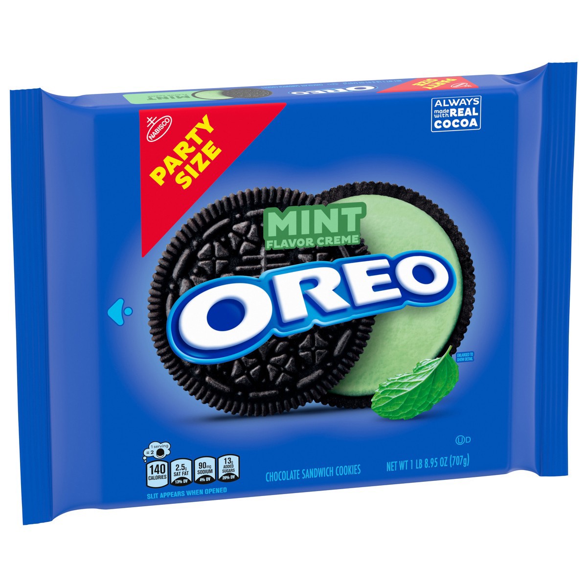 - One 24.95 oz party size pack of OREO Mint Creme Chocolate Sandwich Cookies (packaging may vary)