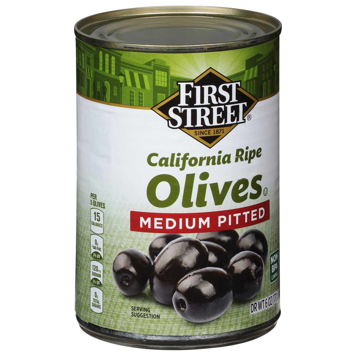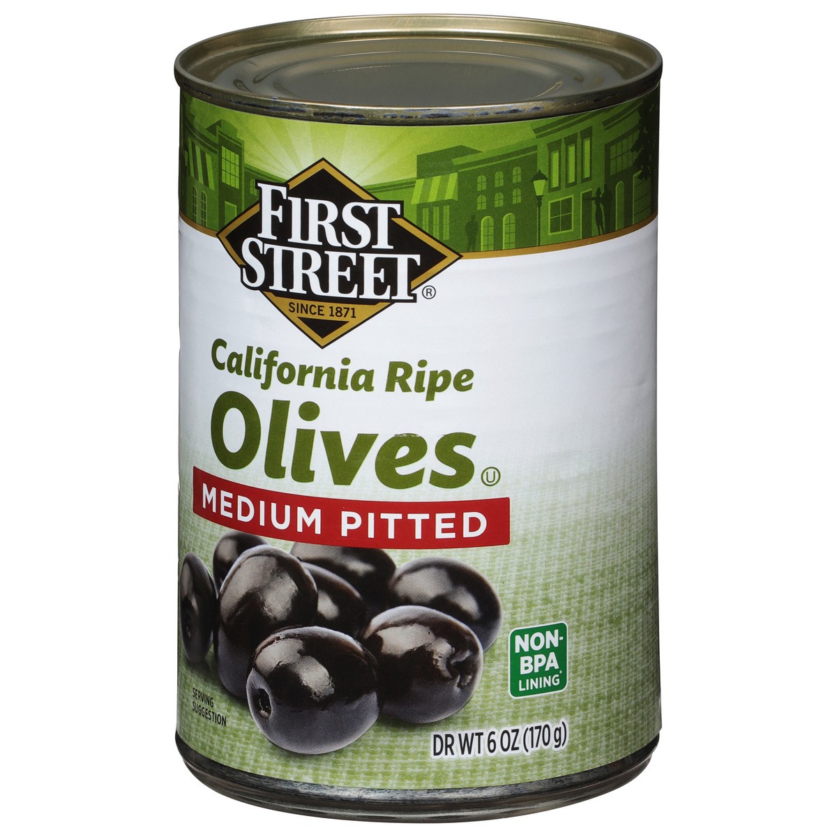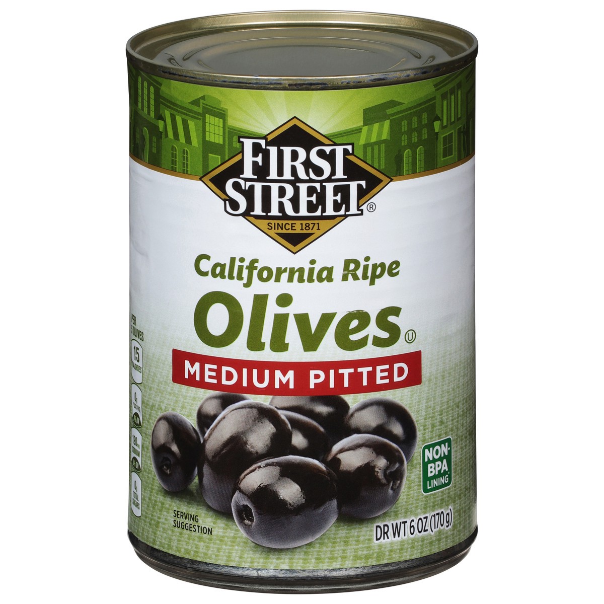 First Street Medium Pitted Ripe Olives - 6 oz